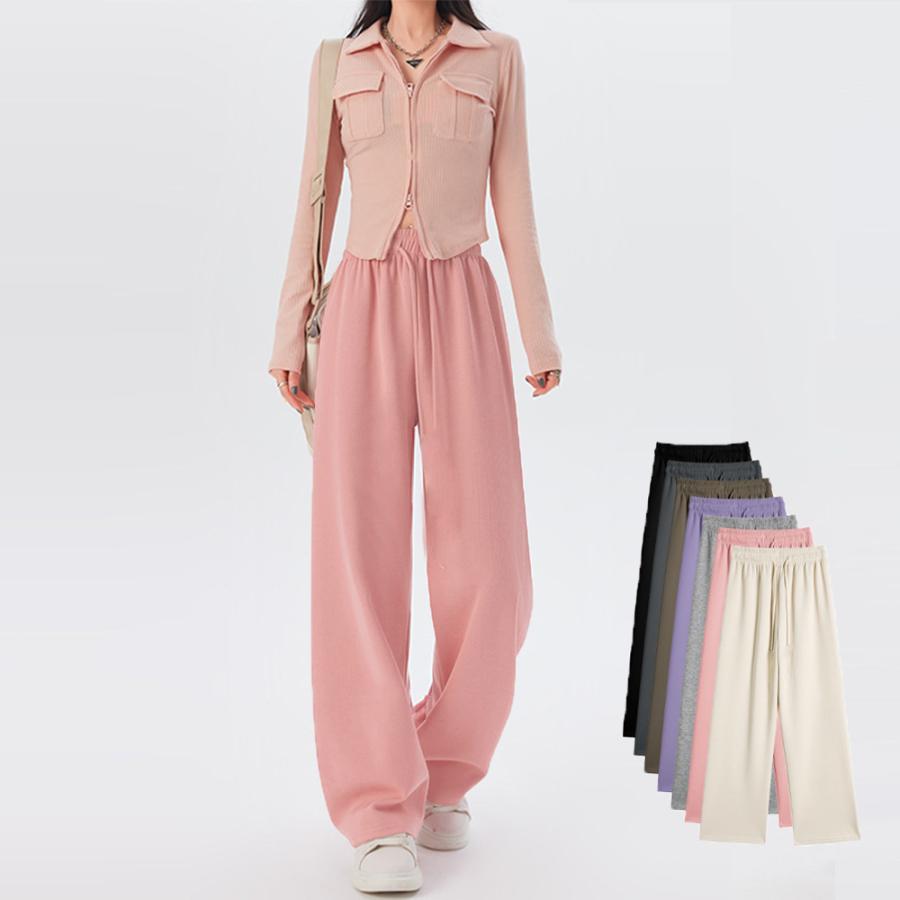 レディースボトムス ハイウエスト イージー ストレートパンツ ゆったりダンス衣装 カジュアルパンツ おしゃれ長ズボン