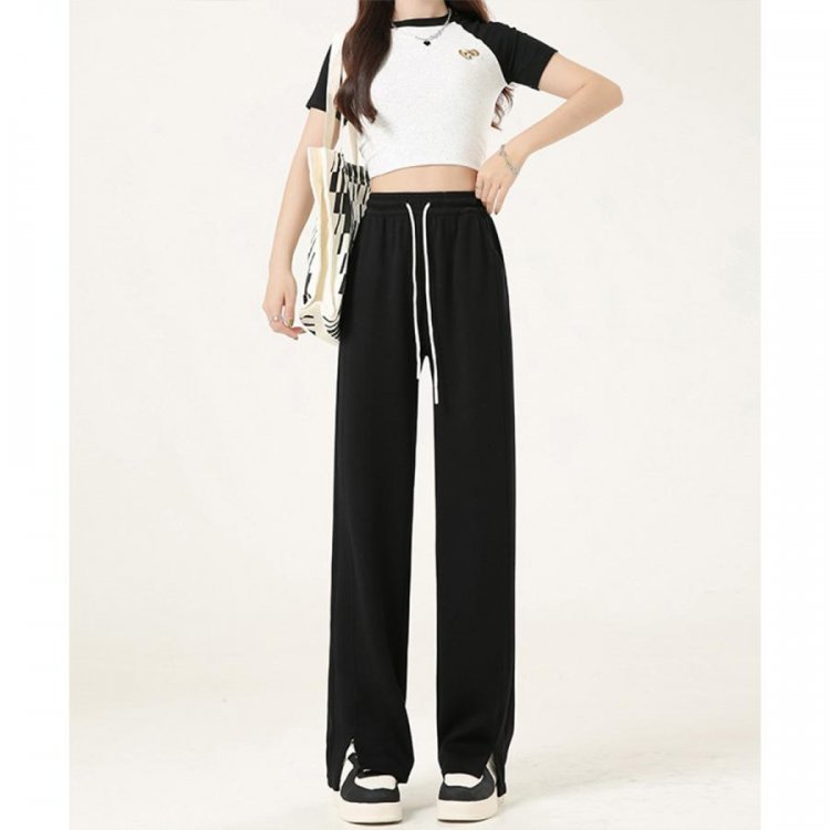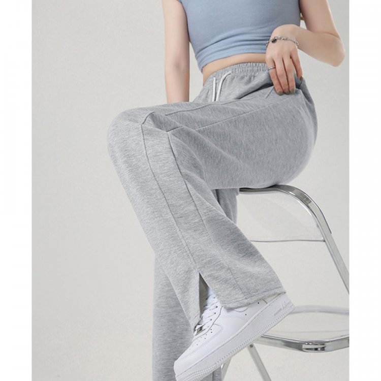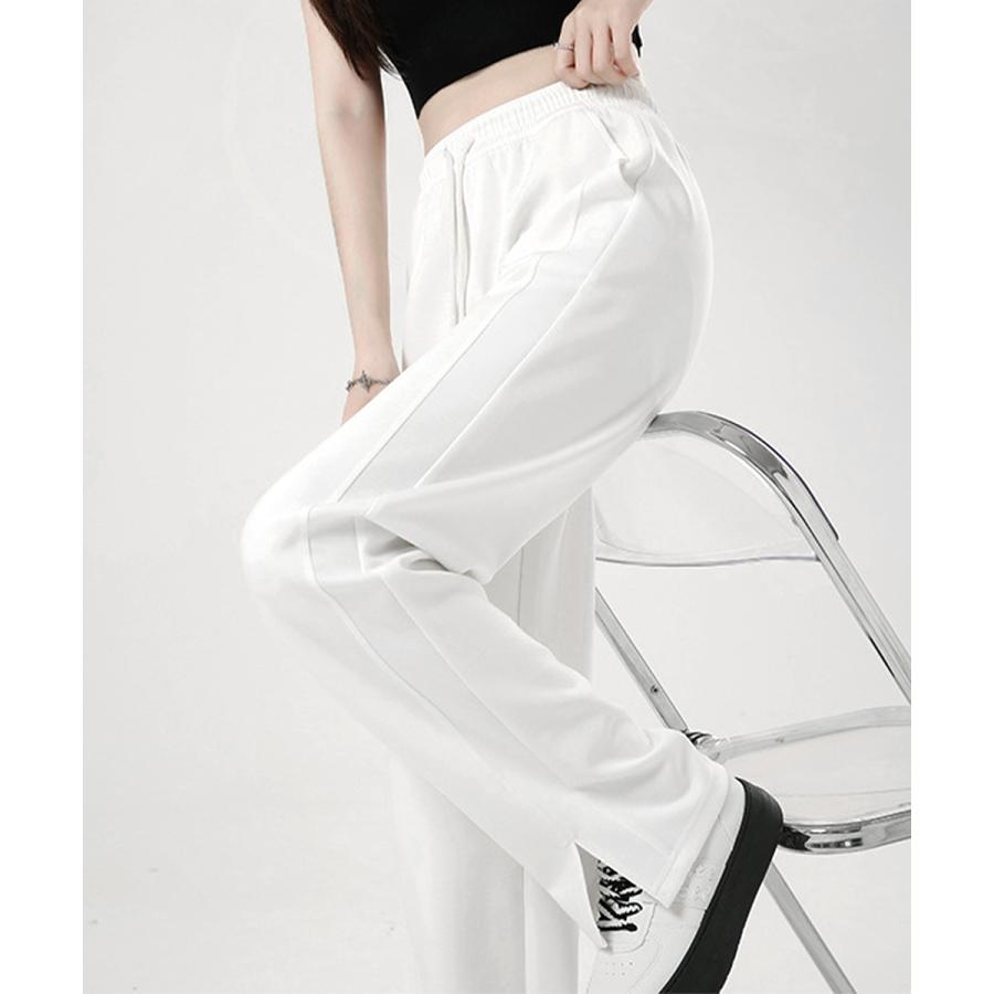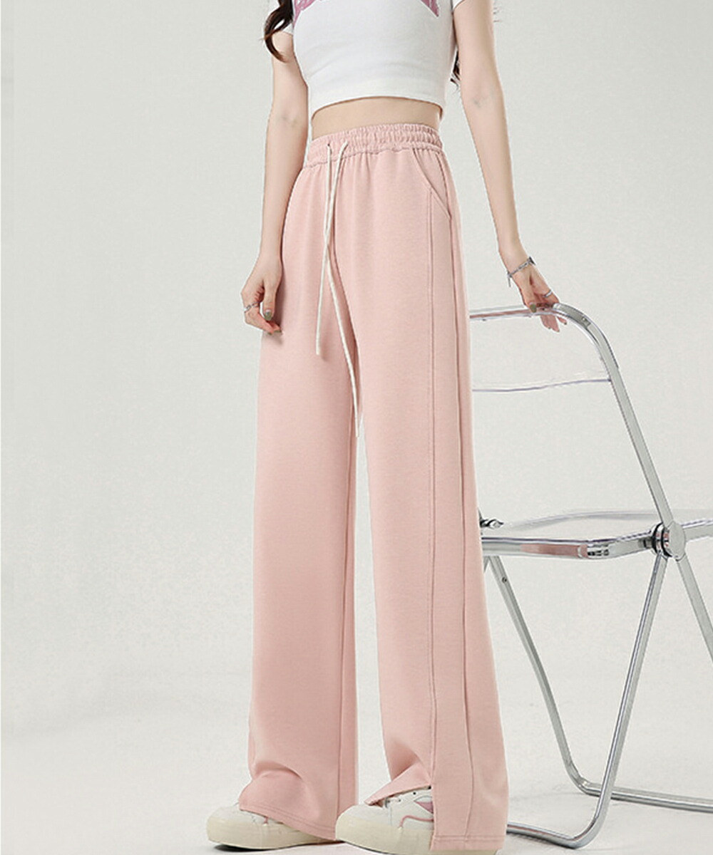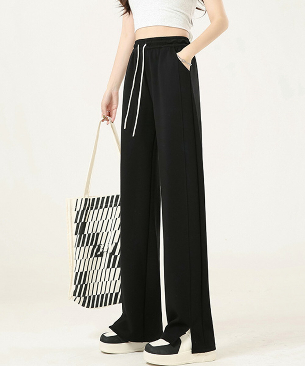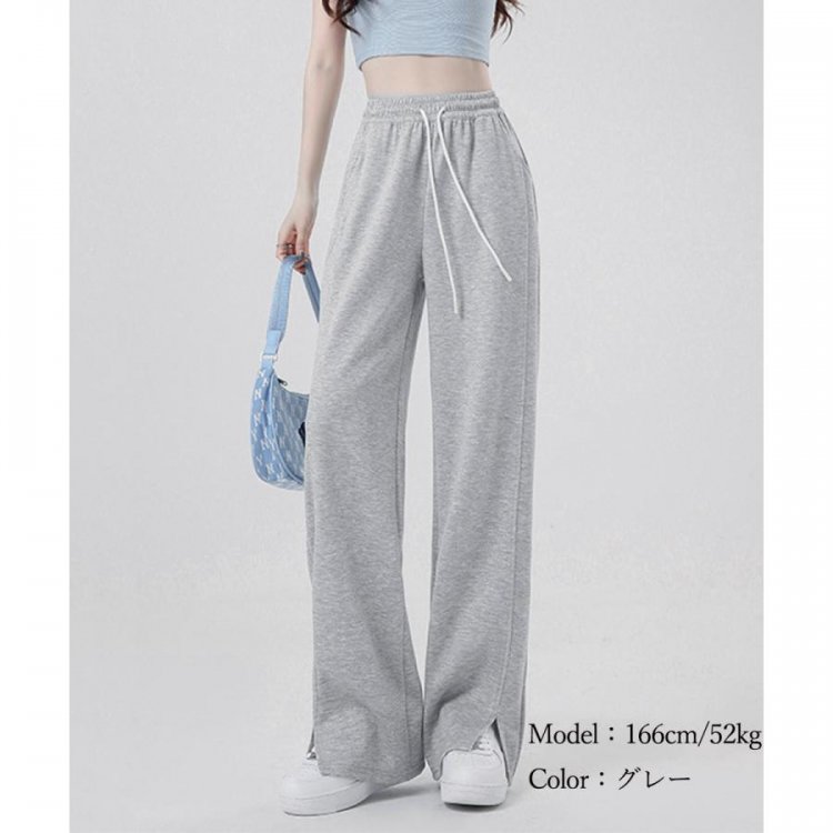サイドスリットワイドパンツ ゆったり ワイドイージーパンツ ドローストリング ウエストゴム ジョガーパンツ ポケット付