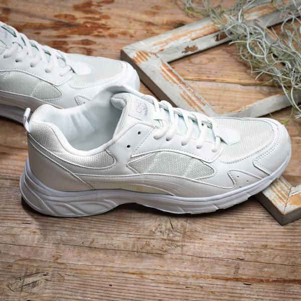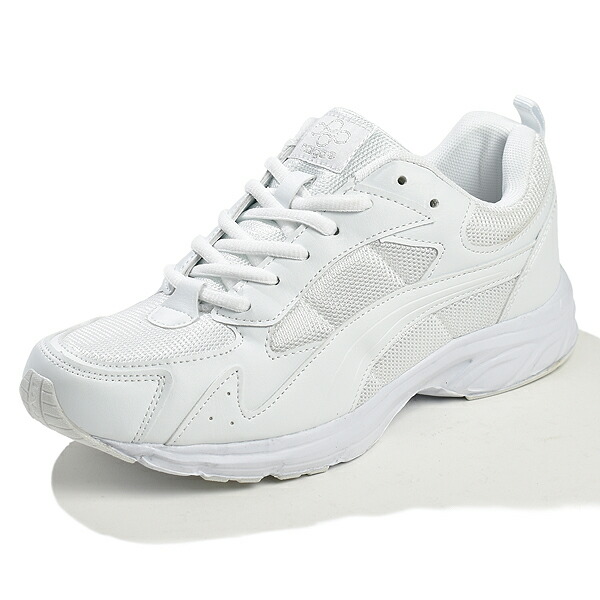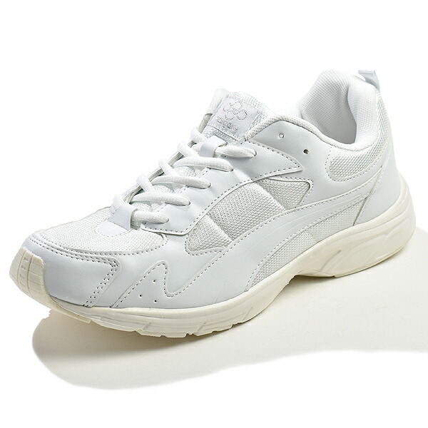単色の真っ白なスポーツシューズ、ウォーキングやジョギングなど軽い運動に最適、小学生中学生から大人まで、すべての方へおすすめの白スニーカー。