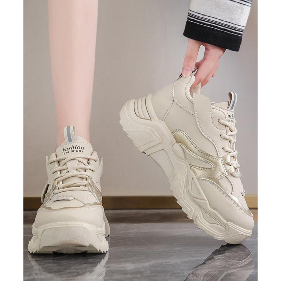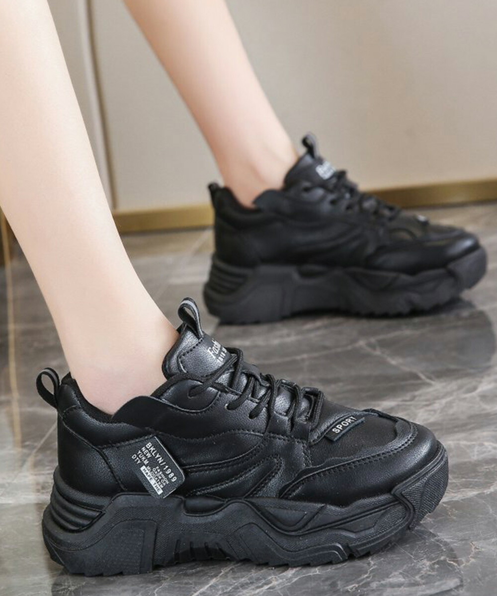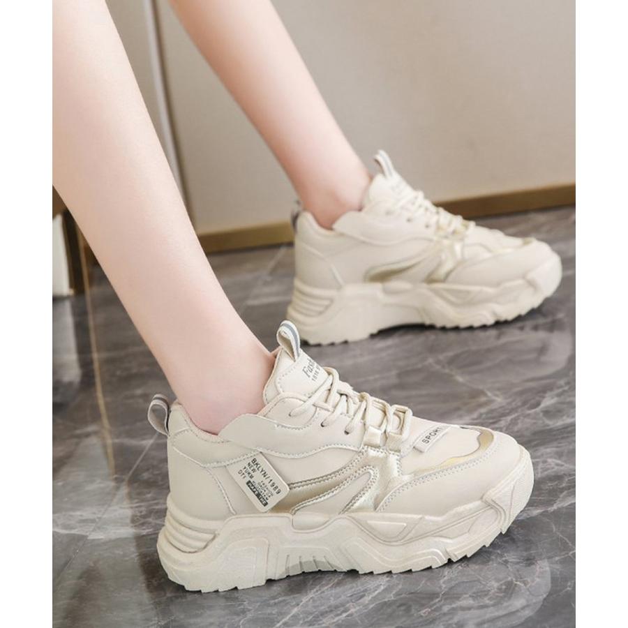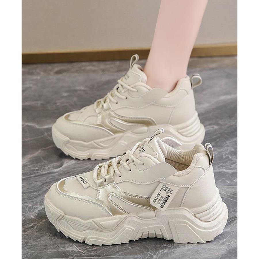 厚底スニーカー 疲れない 通勤通学靴 ウォーキング 履きやすい PUレザー ハイソール靴 韓国ダッドシューズ 歩きやすい