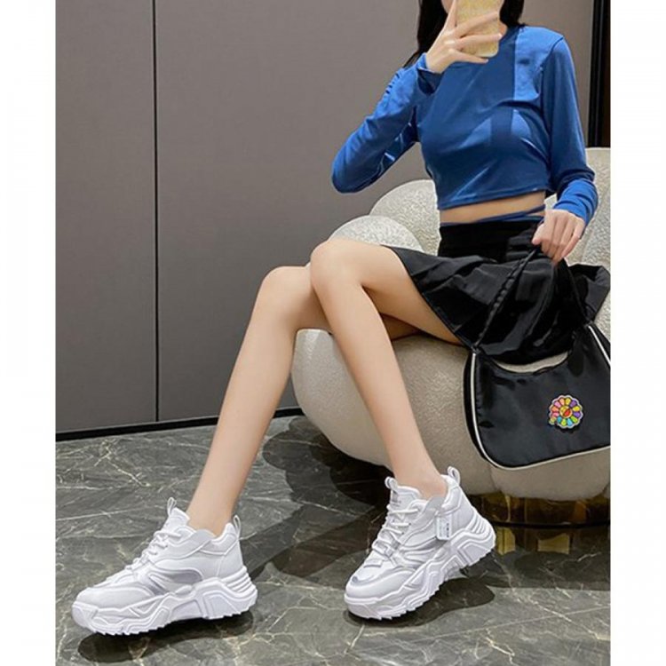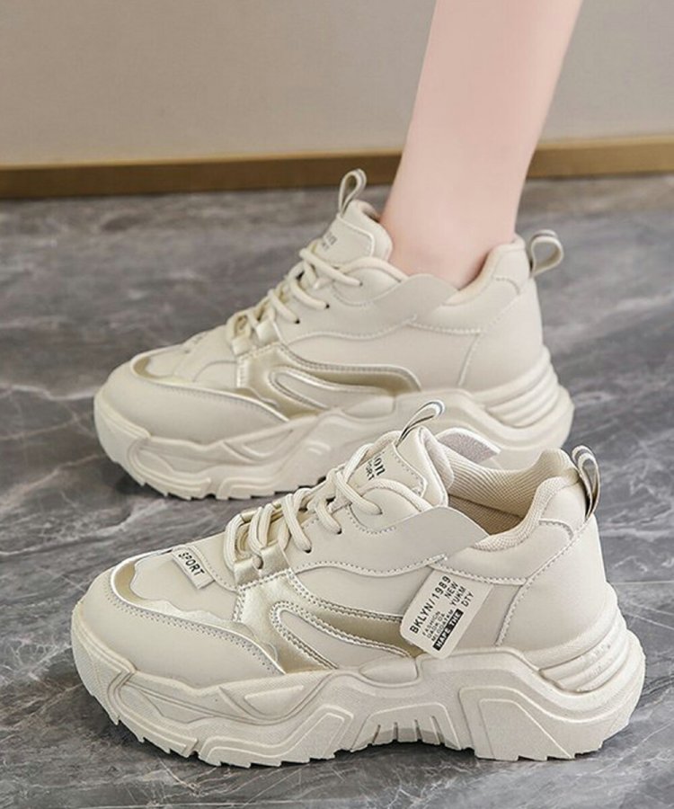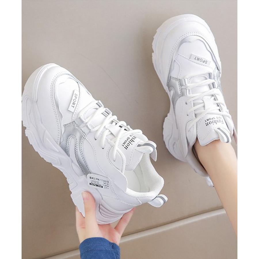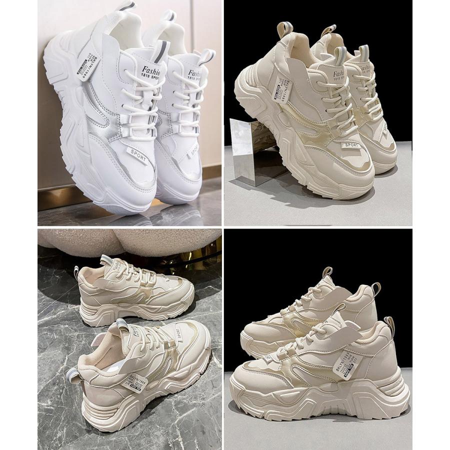 厚底スニーカー 疲れない 通勤通学靴 ウォーキング 履きやすい PUレザー ハイソール靴 韓国ダッドシューズ 歩きやすい