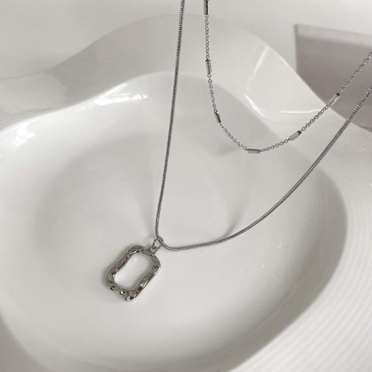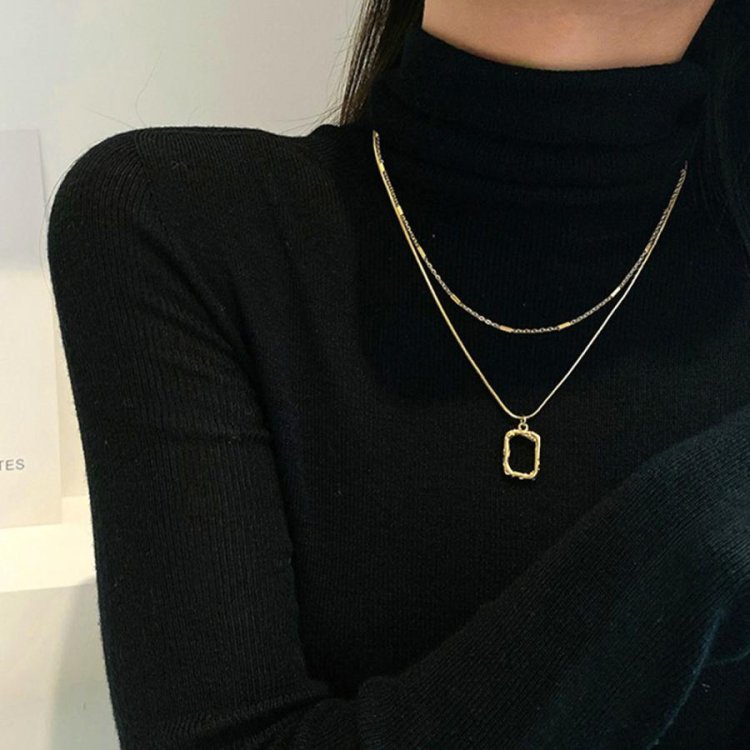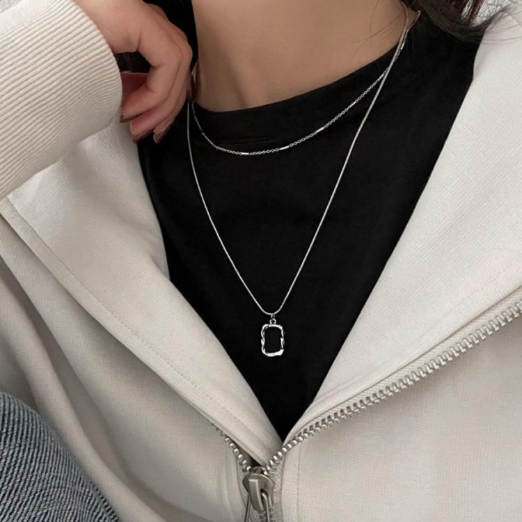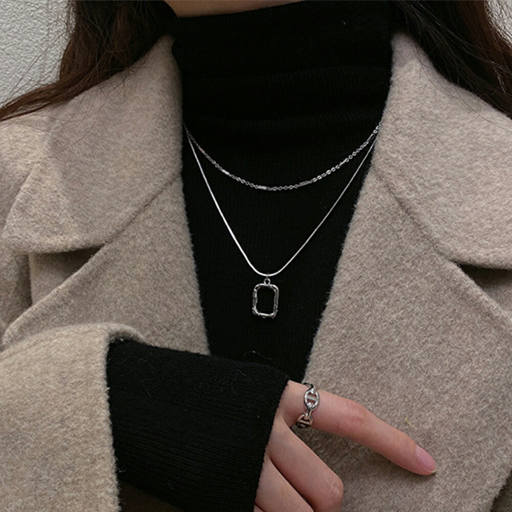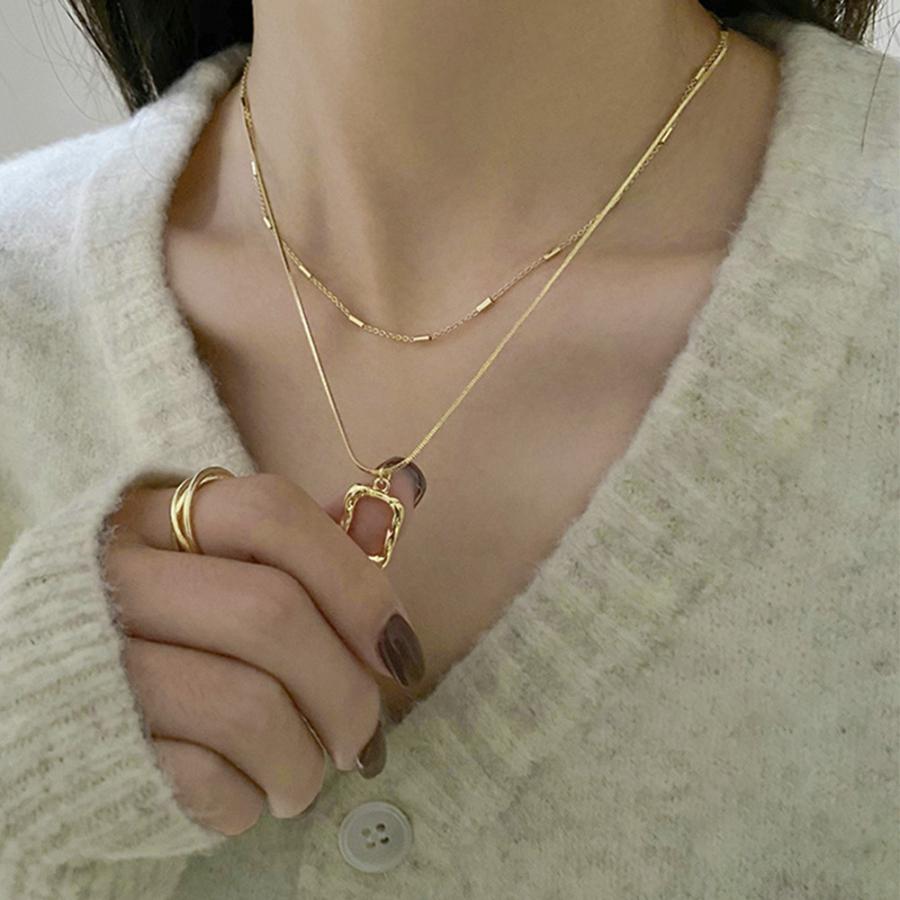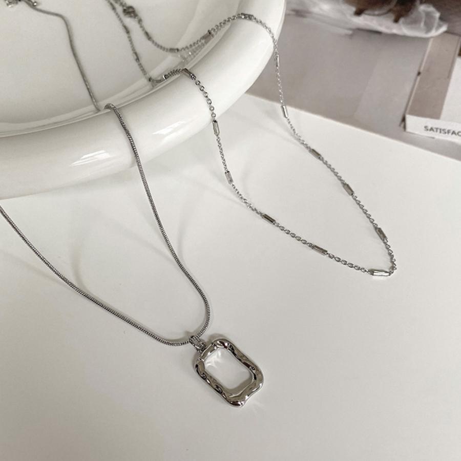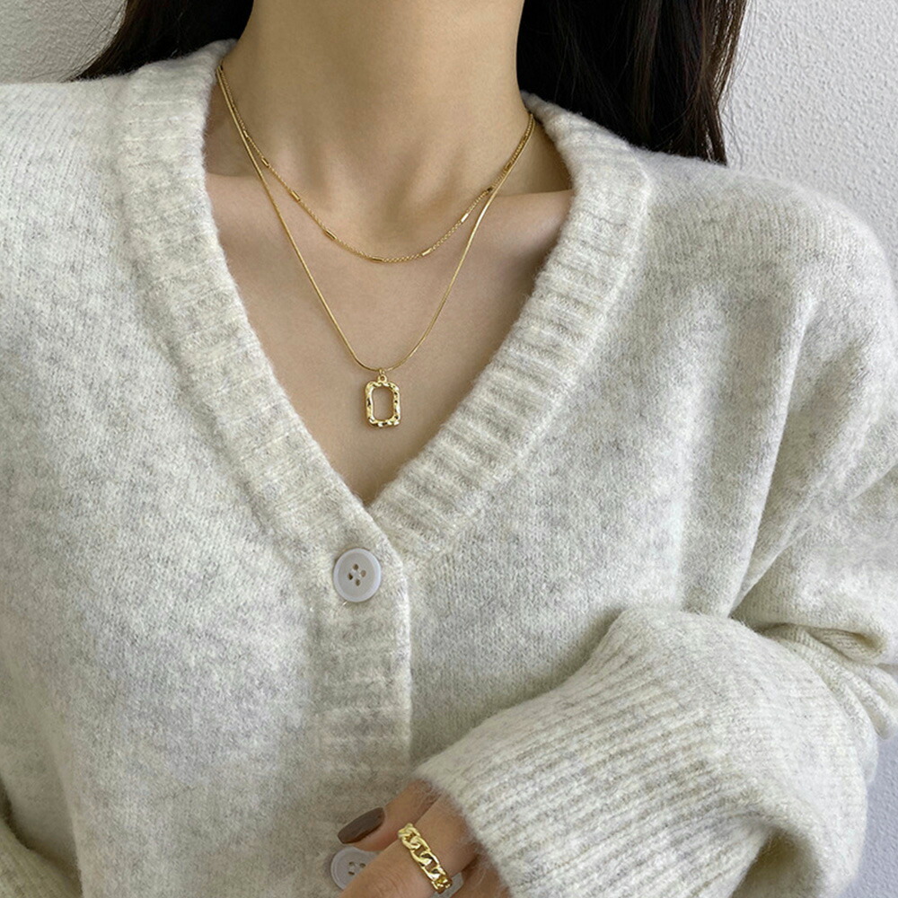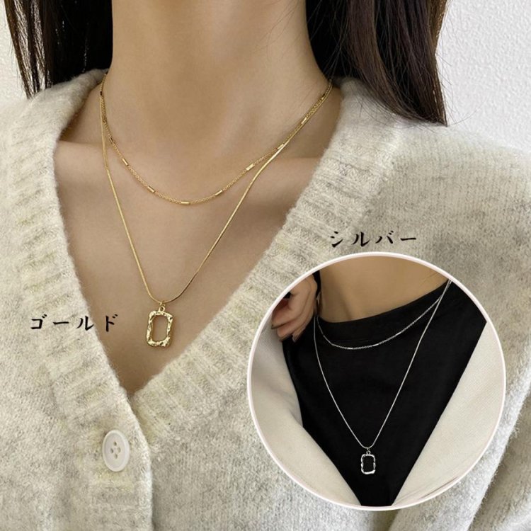 チェーンネックレスとスクエアチャームの2連セットアイテム