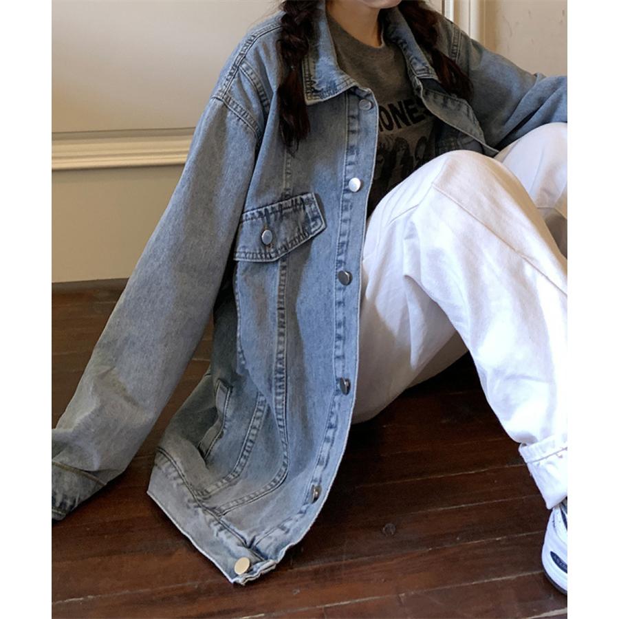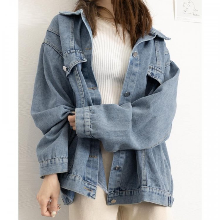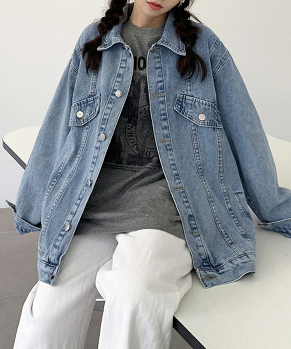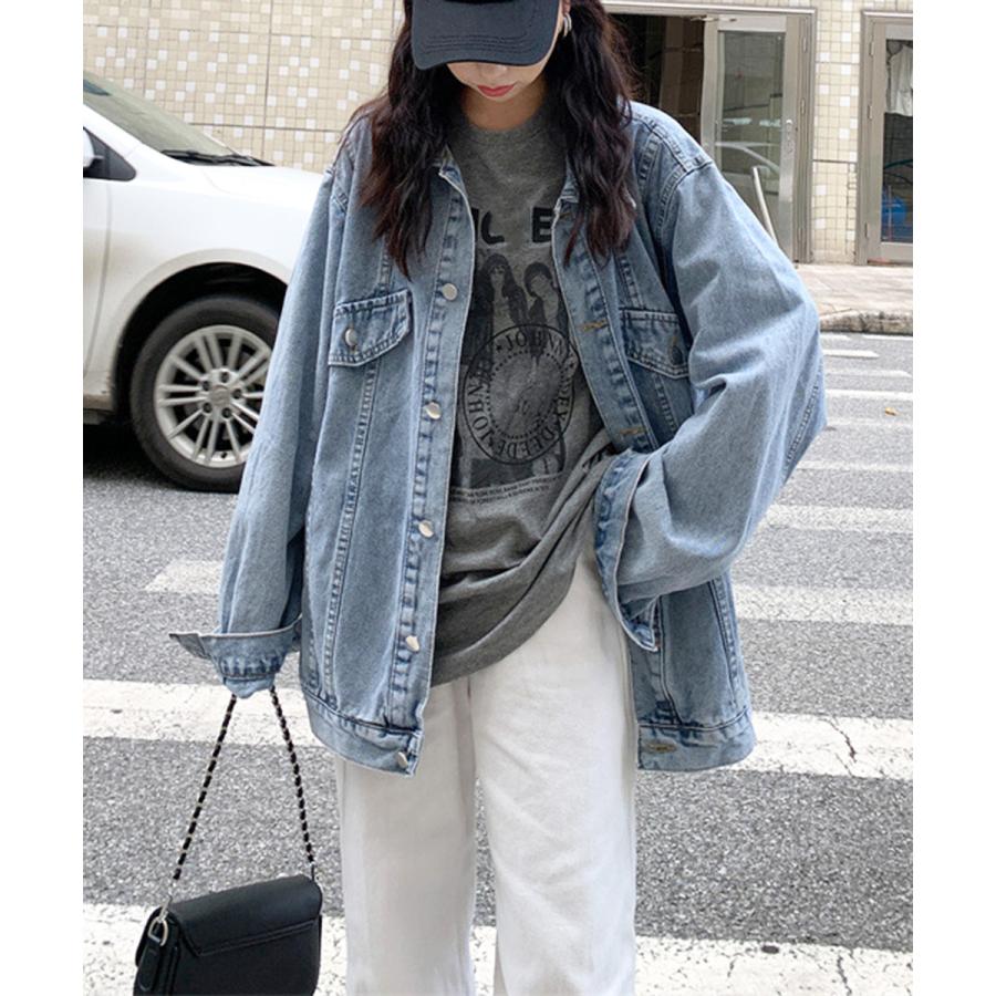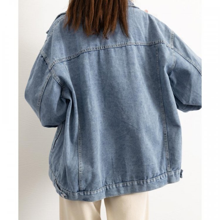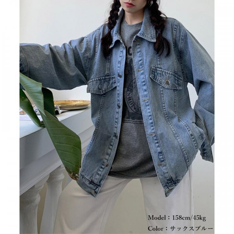 レディース ビッグシルエットジャケット ストリート風 デニム羽織 長袖トップス 無地 ジージャン大人カジュアル体型カバー