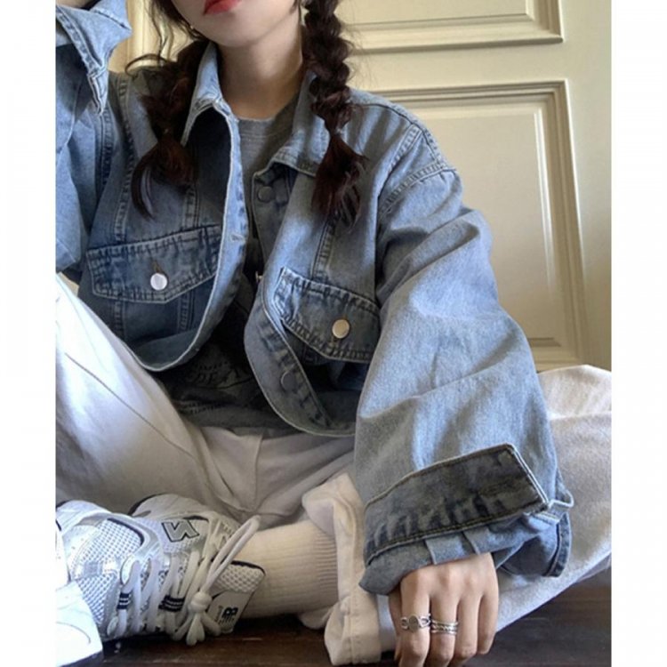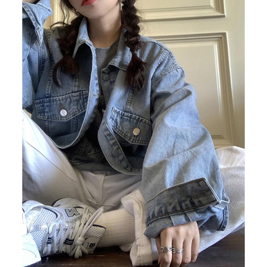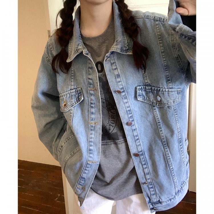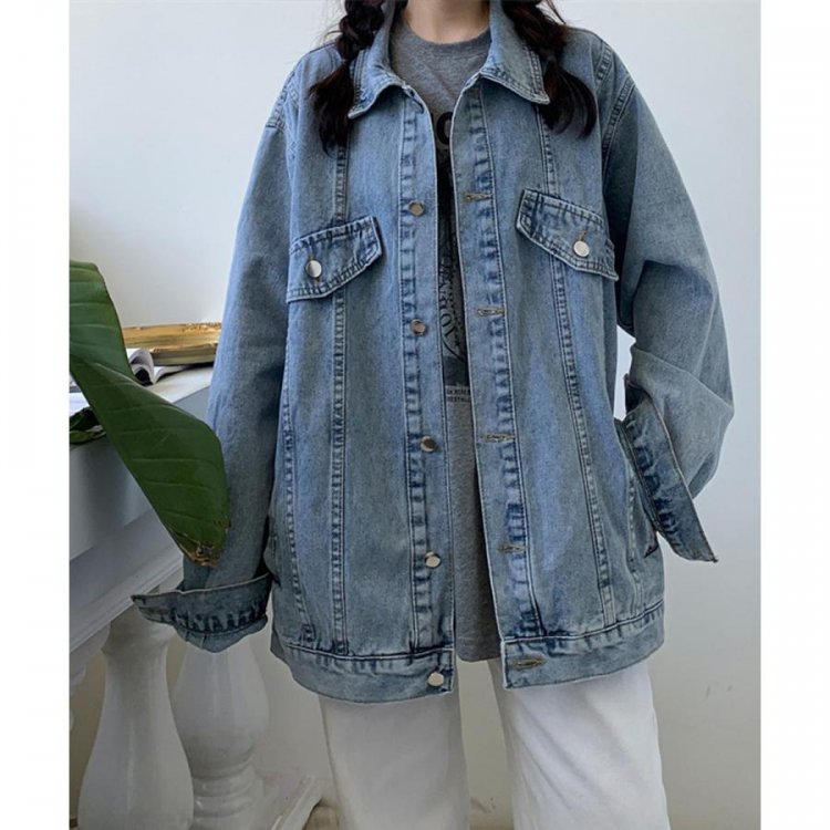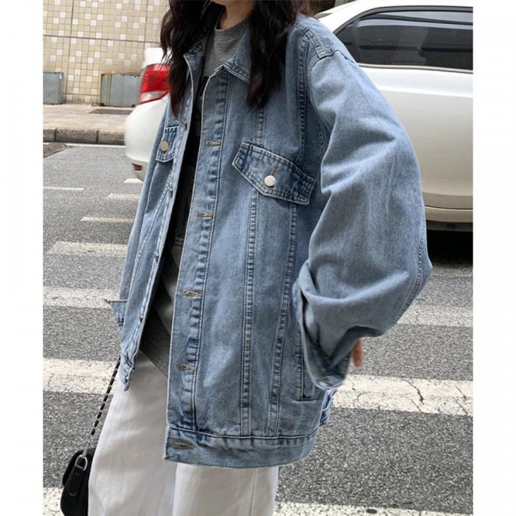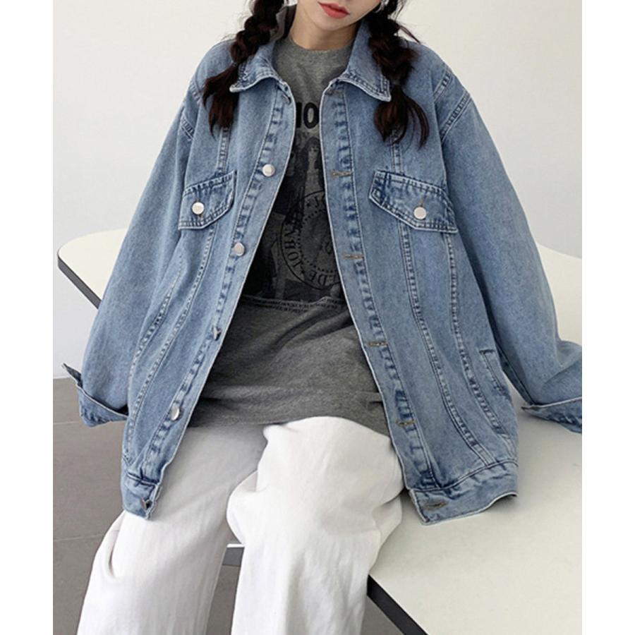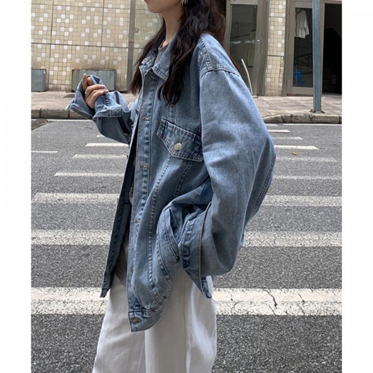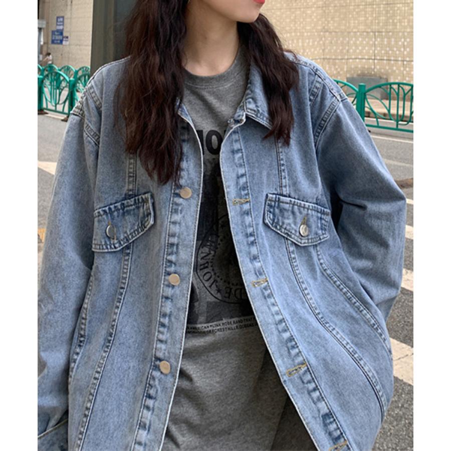 レディース ビッグシルエットジャケット ストリート風 デニム羽織 長袖トップス 無地 ジージャン大人カジュアル体型カバー