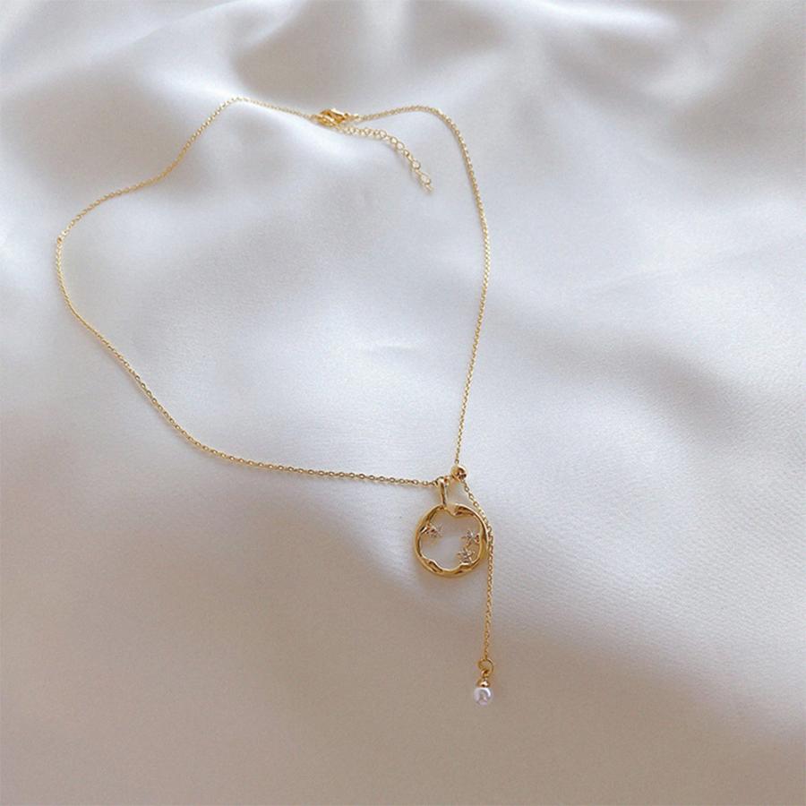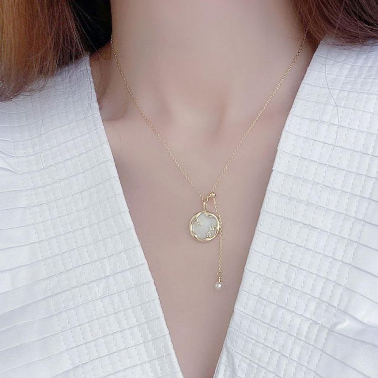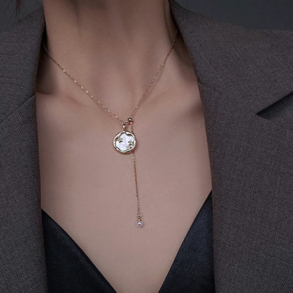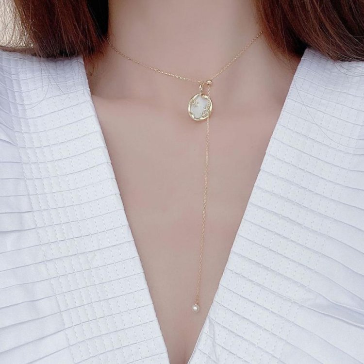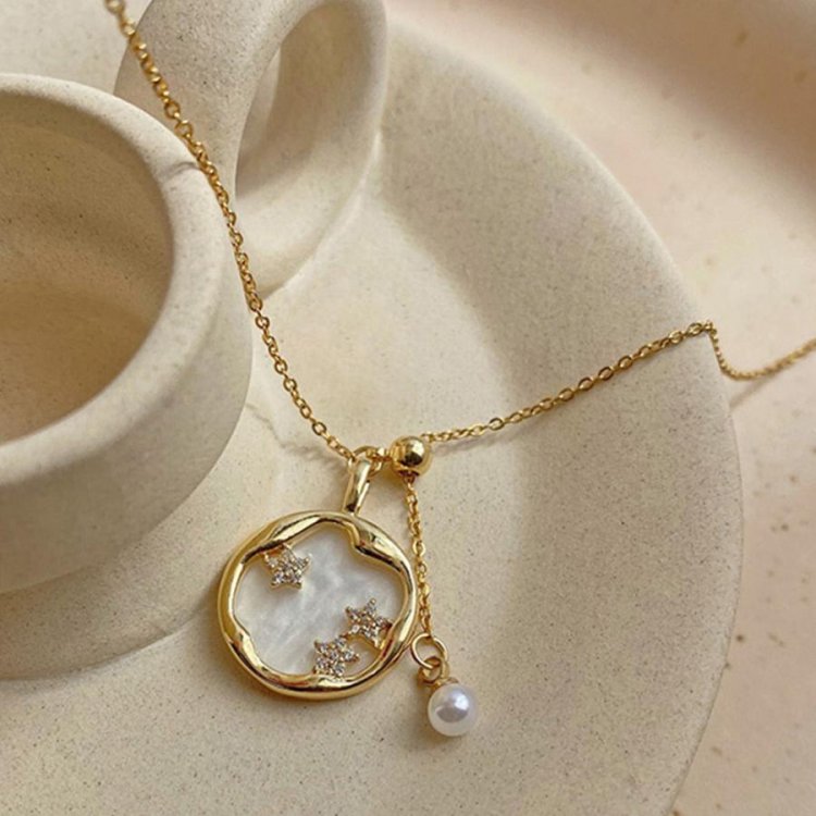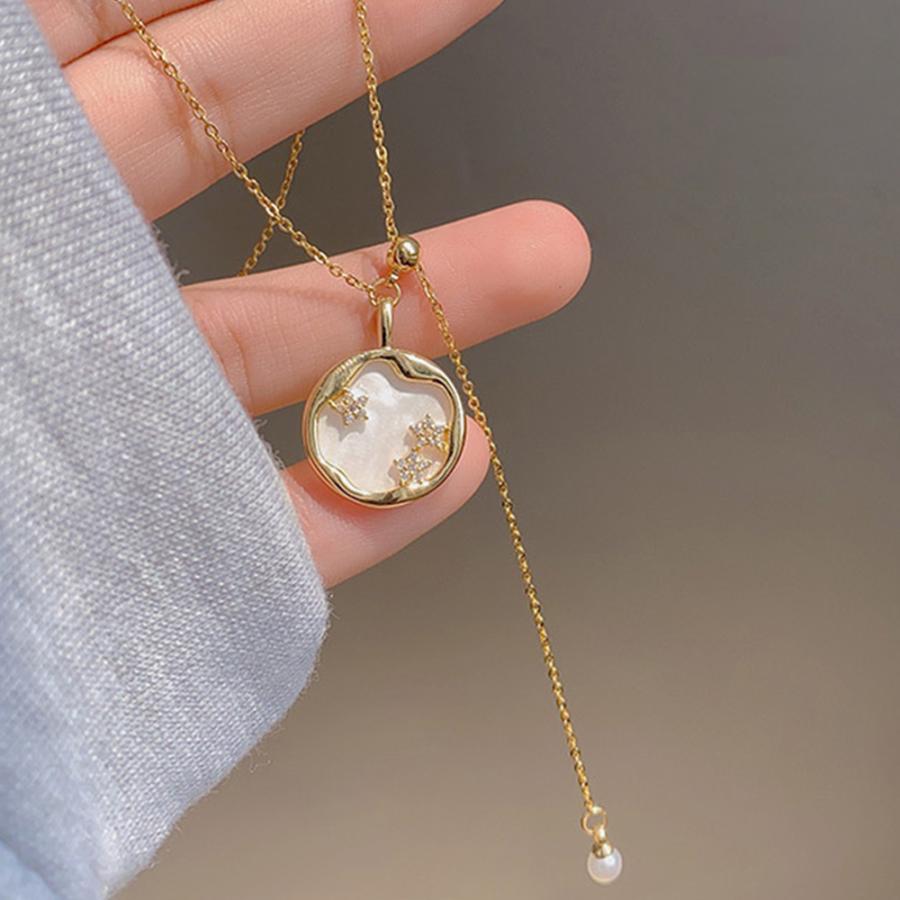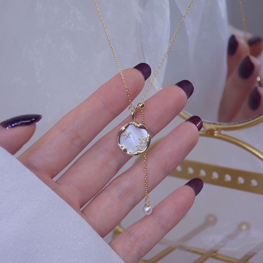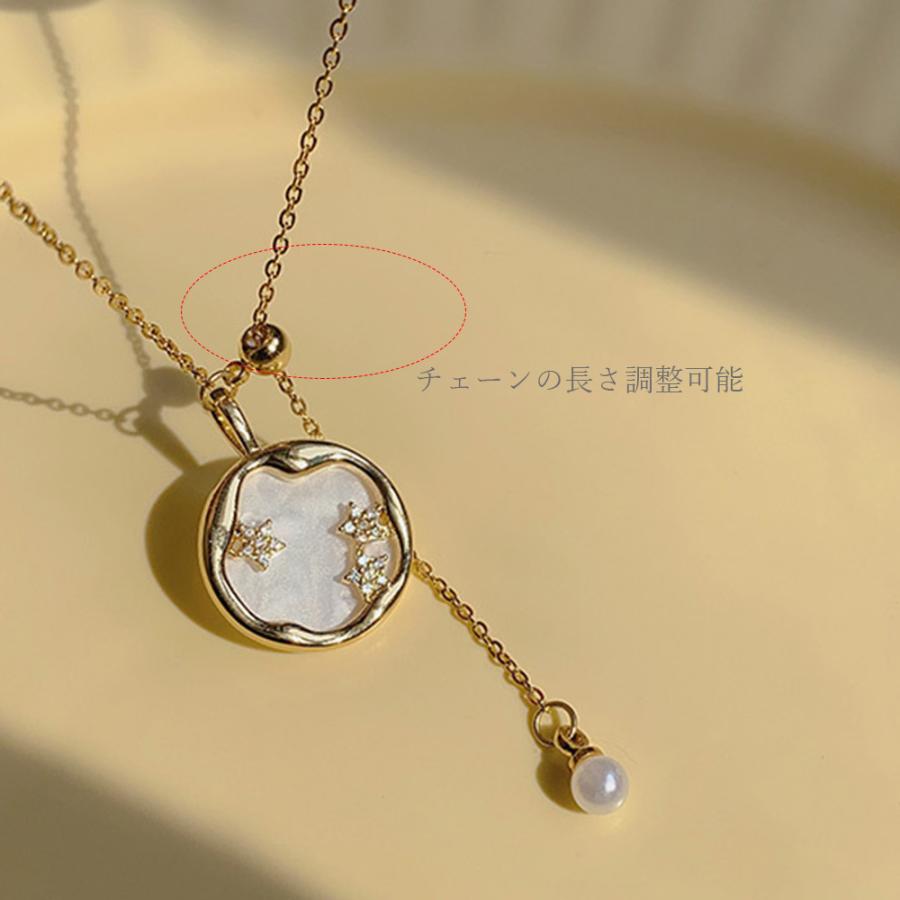 きらきら輝くラインストーンを飾れた貝殻ネックレス
