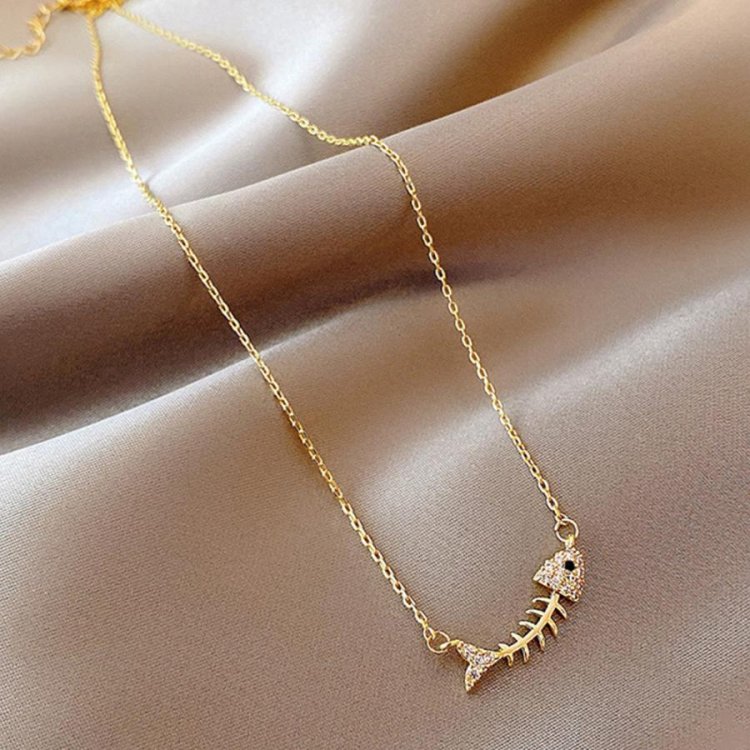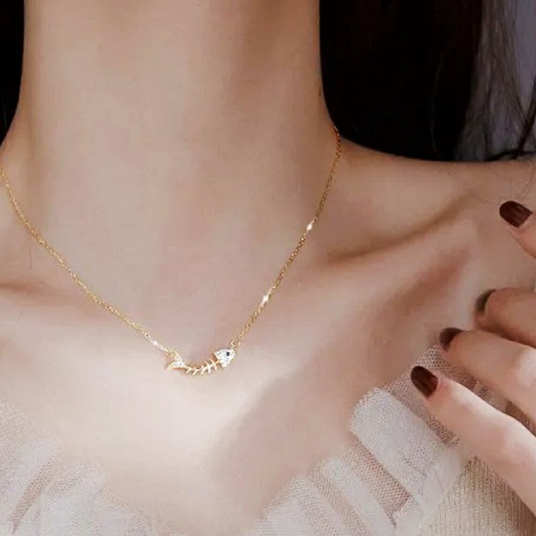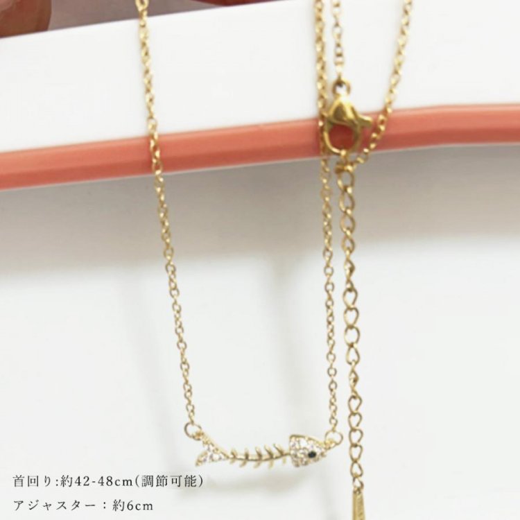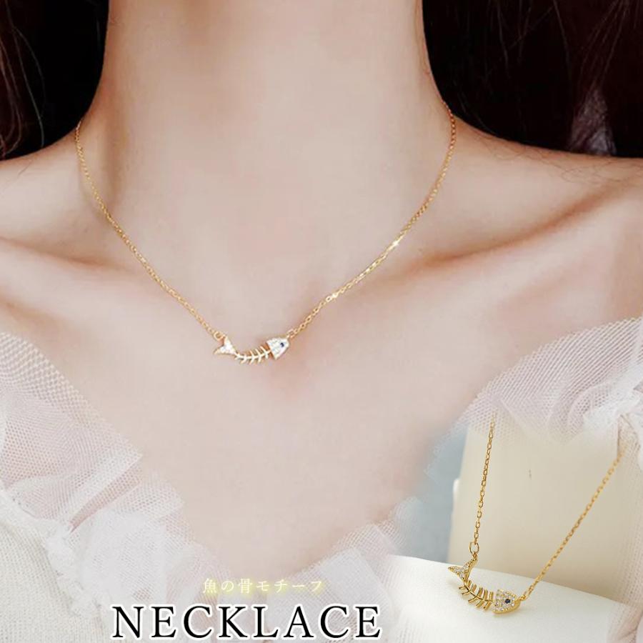 魚柄ネックレス 韓国風 魚の骨モチーフ レディース チェーンネックレス 可愛い 小さい カジュアル ファッション小物