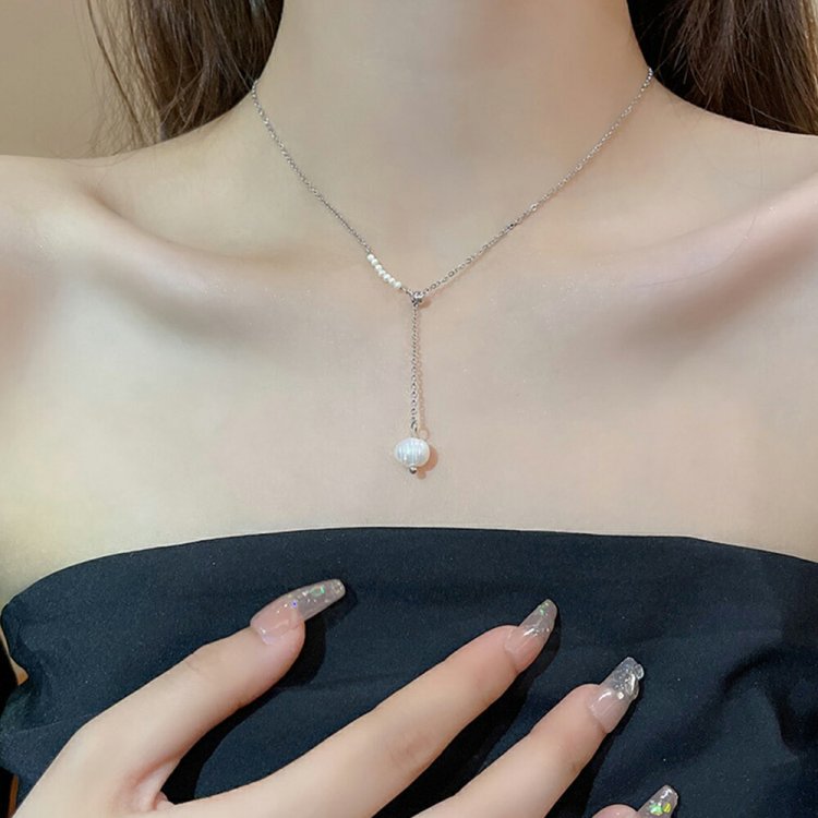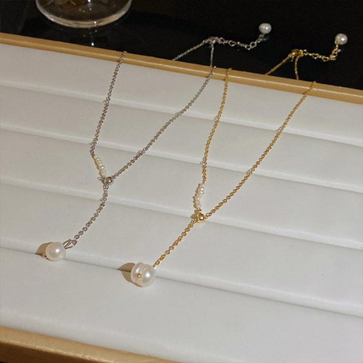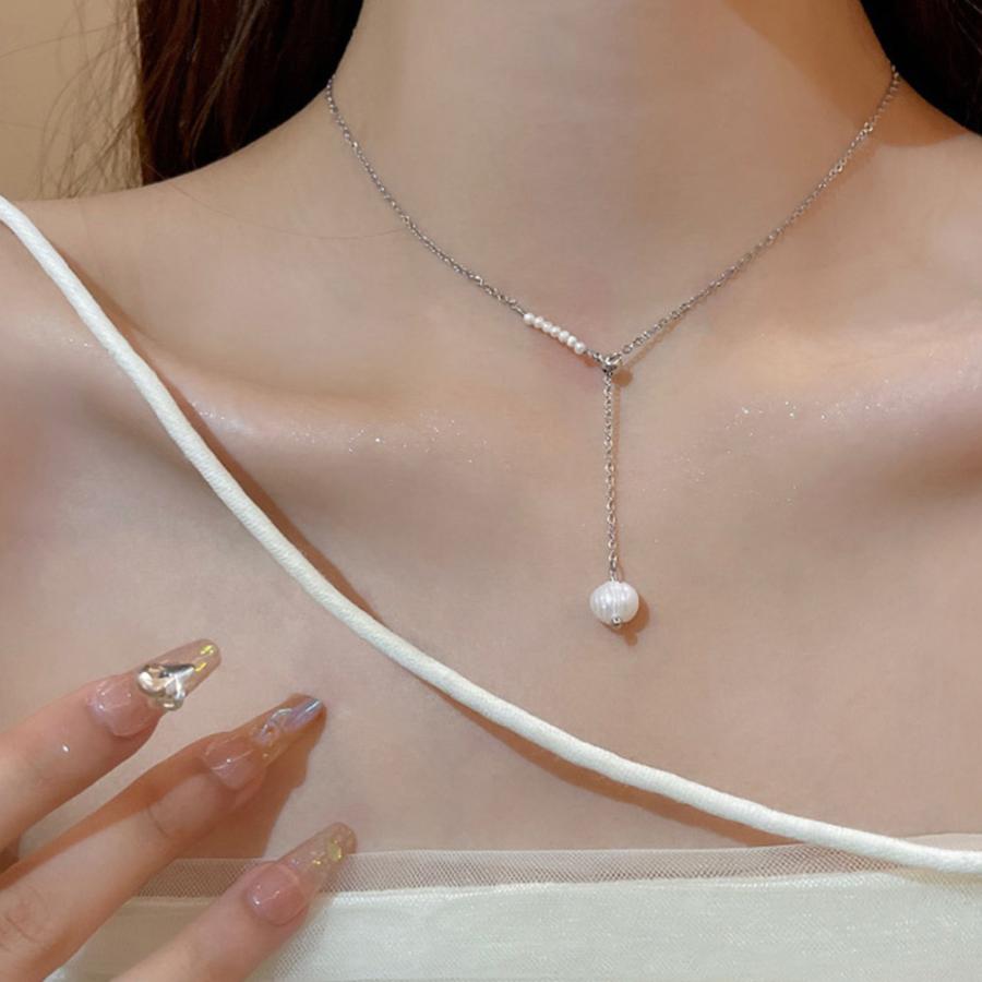 デコルテを上品に引き立ててくれる大人っぽいパールネックレス