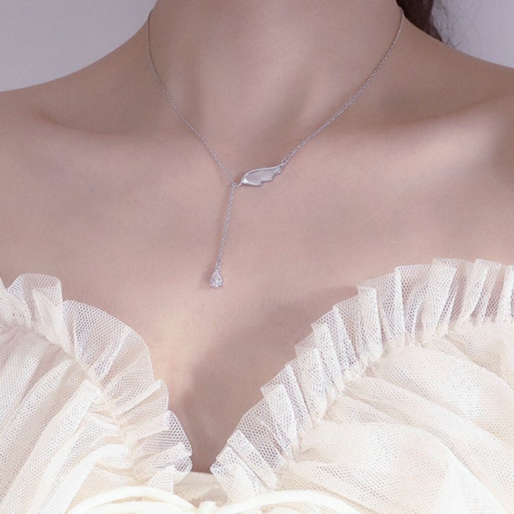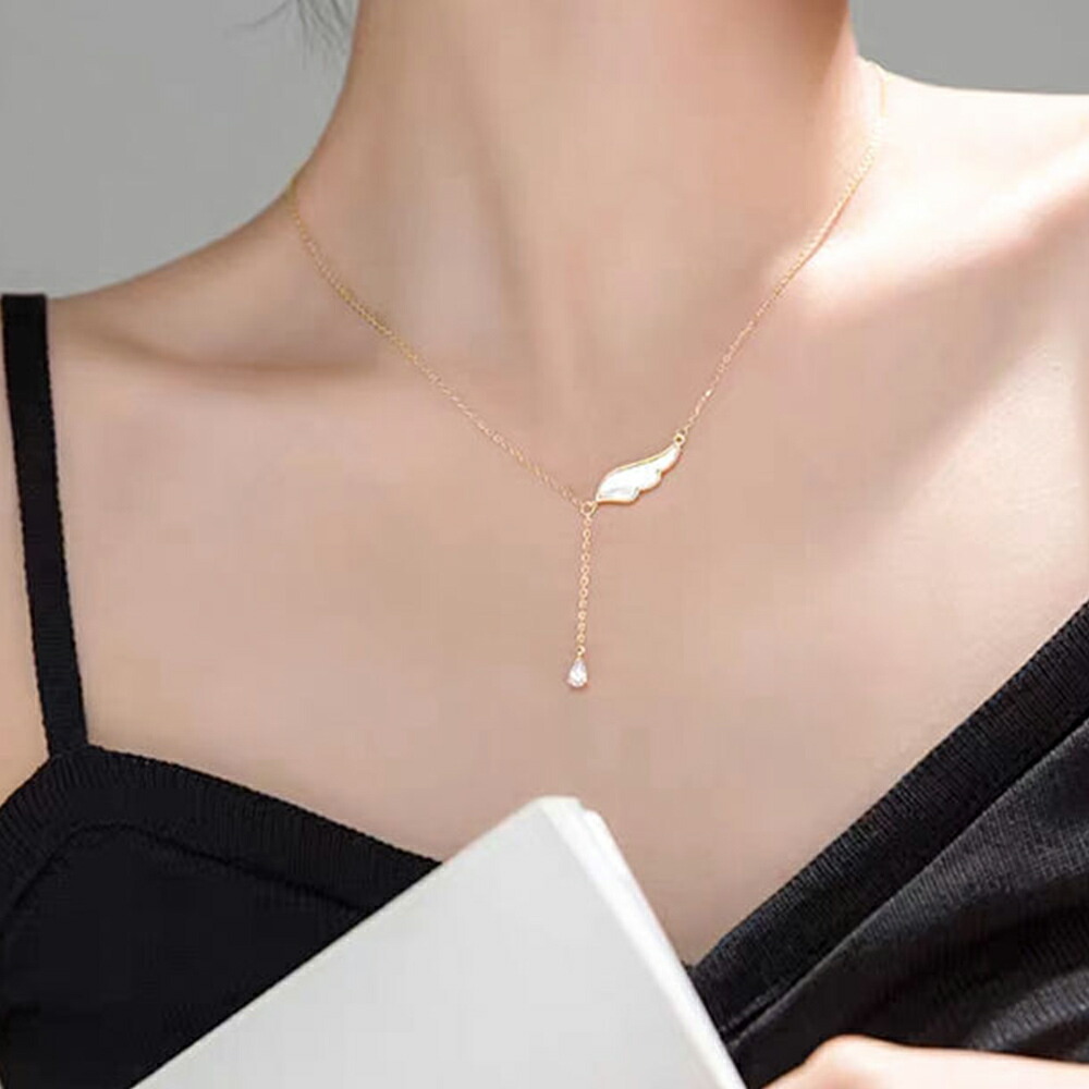 きらきら輝く貝殻を飾れた天使の羽根モチーフネックレス