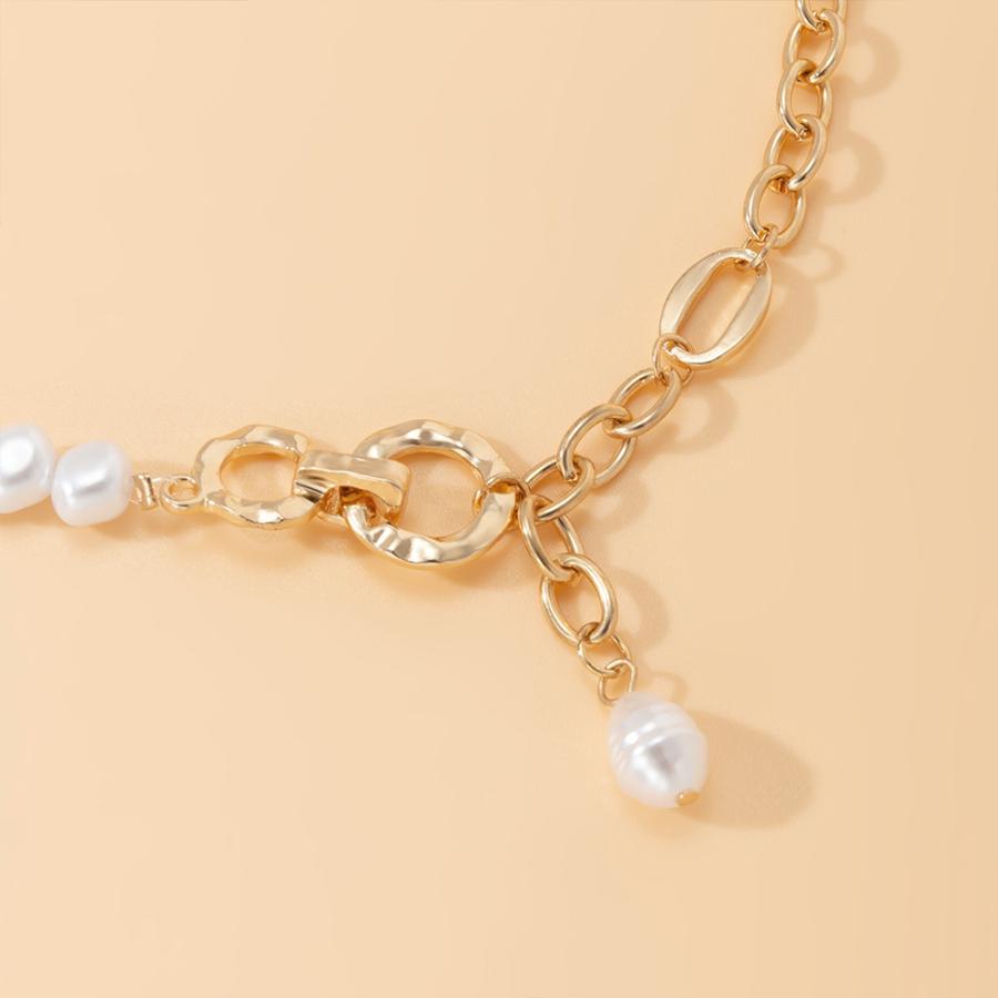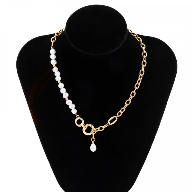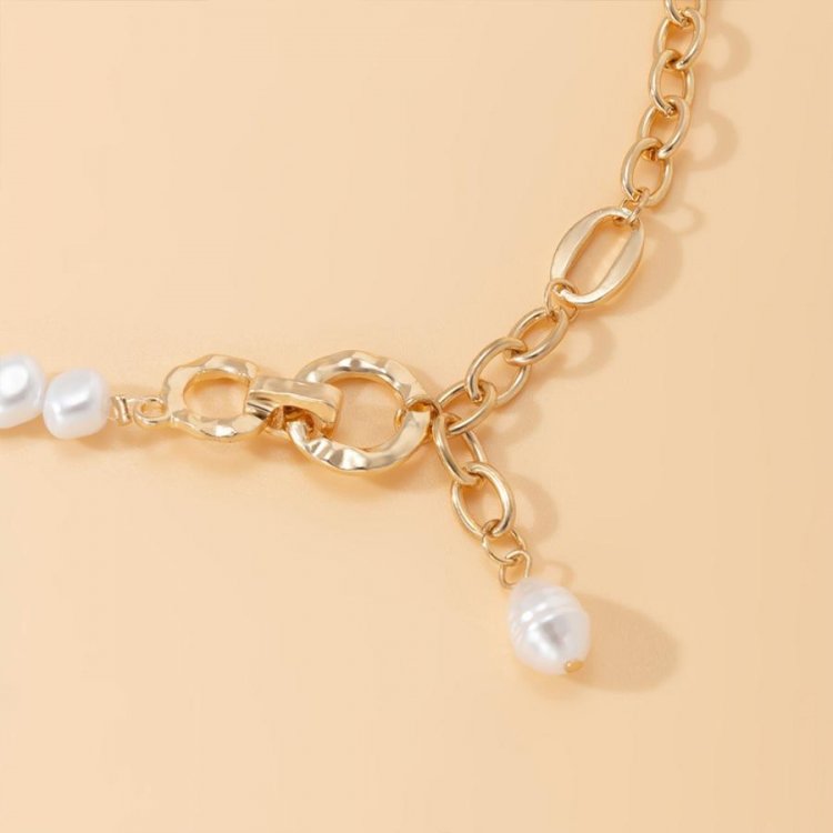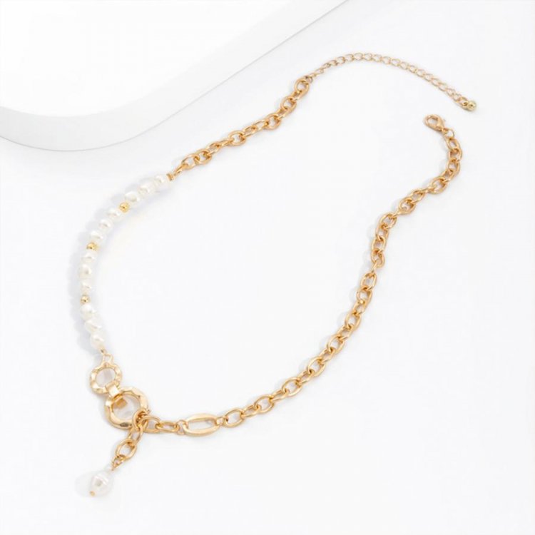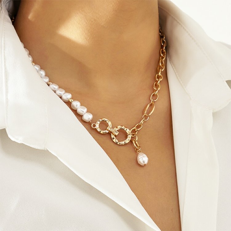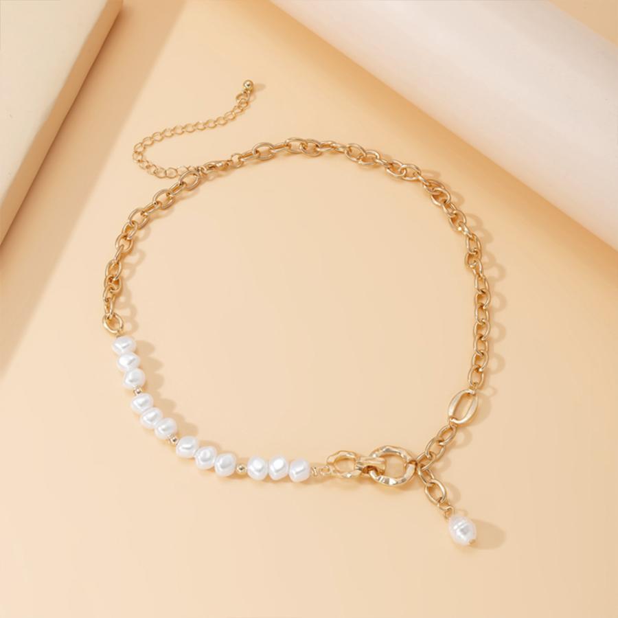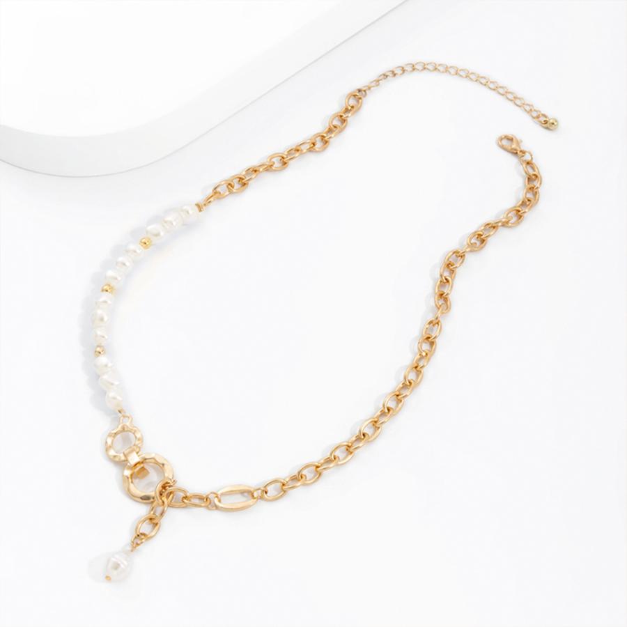 フェイクパールと太めチェーンの非対称デザインチェーンチョーカー