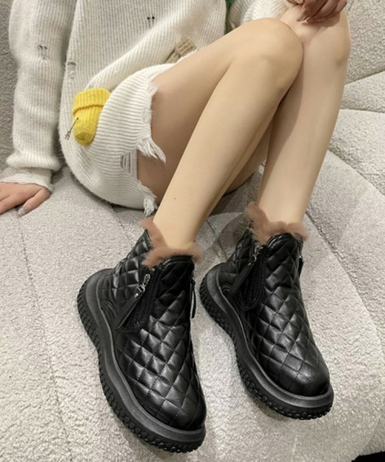 モコモコとした厚手裏ボア加工が施され、寒いシーズンに欠かせない、足元に優しくて暖かい守りをもたらした