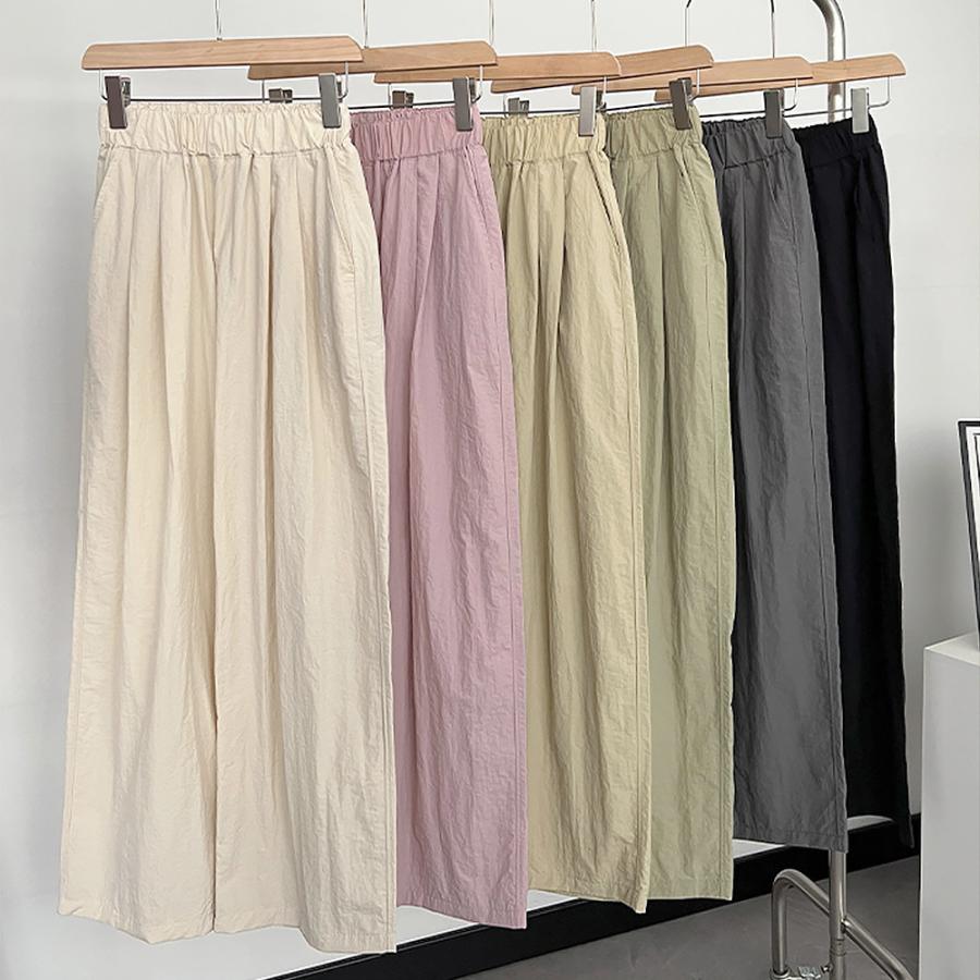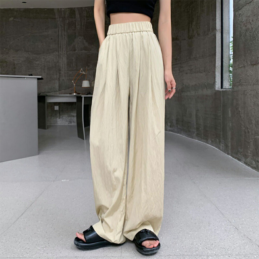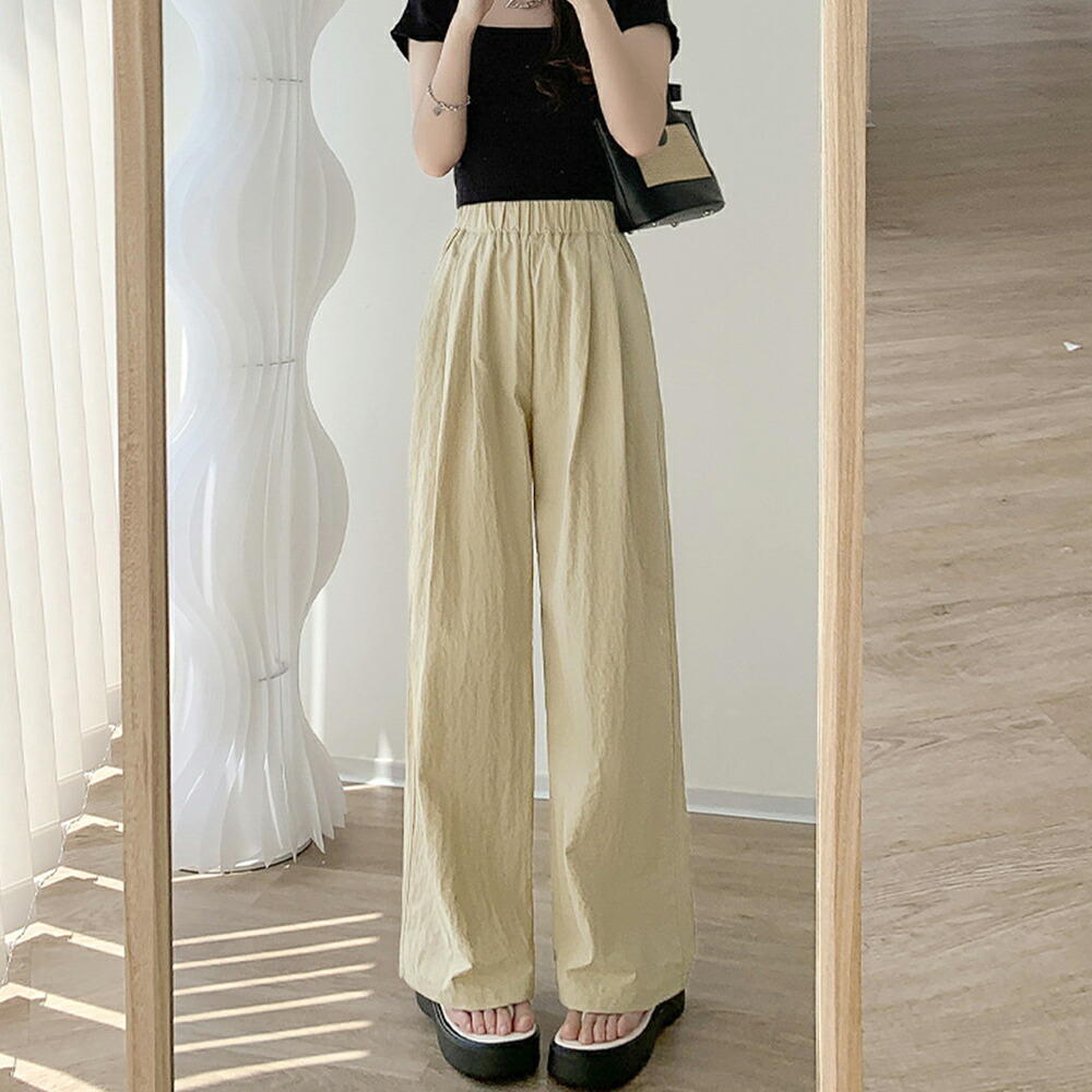 夏パンツ ロングパンツ イージーパンツ おしゃれ ワイドパンツ ウエストゴム 着やせ ハイウエスト ゆったり 着回し