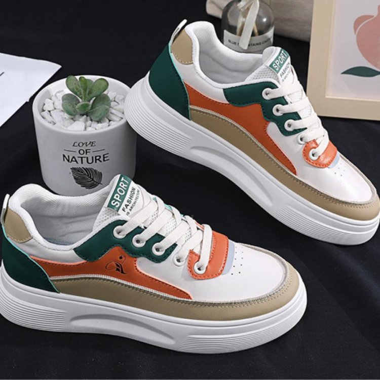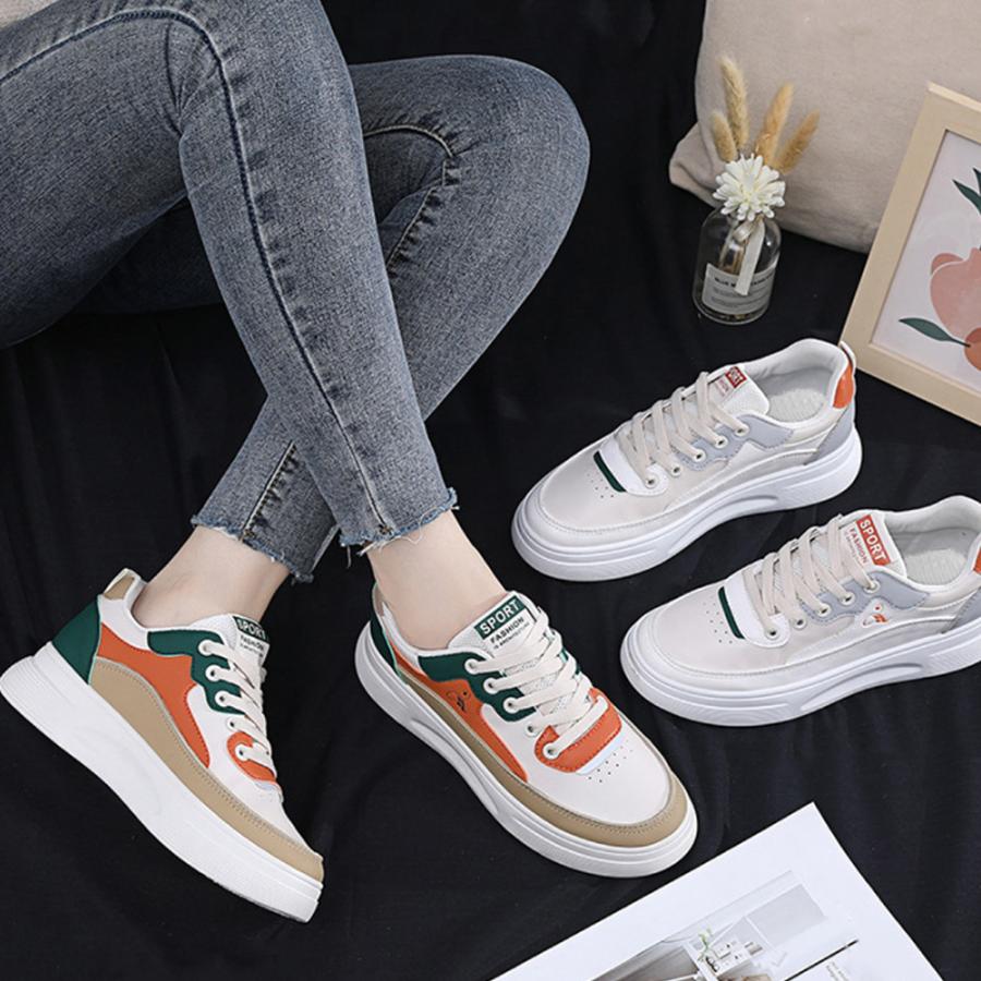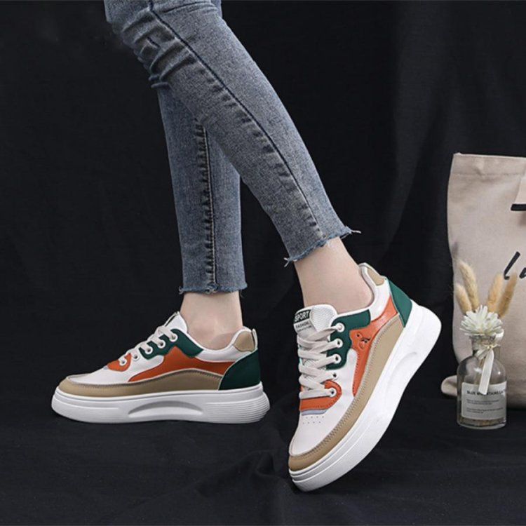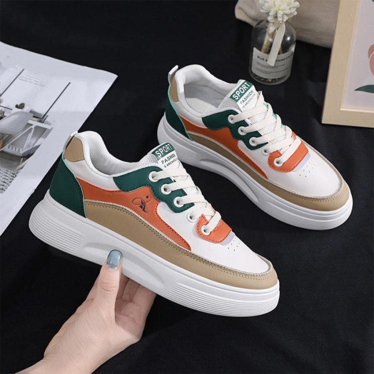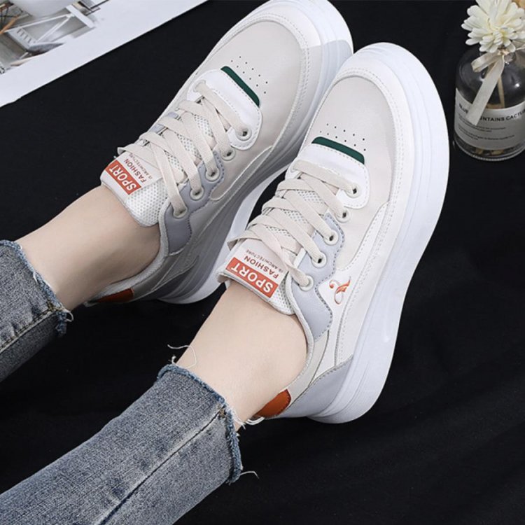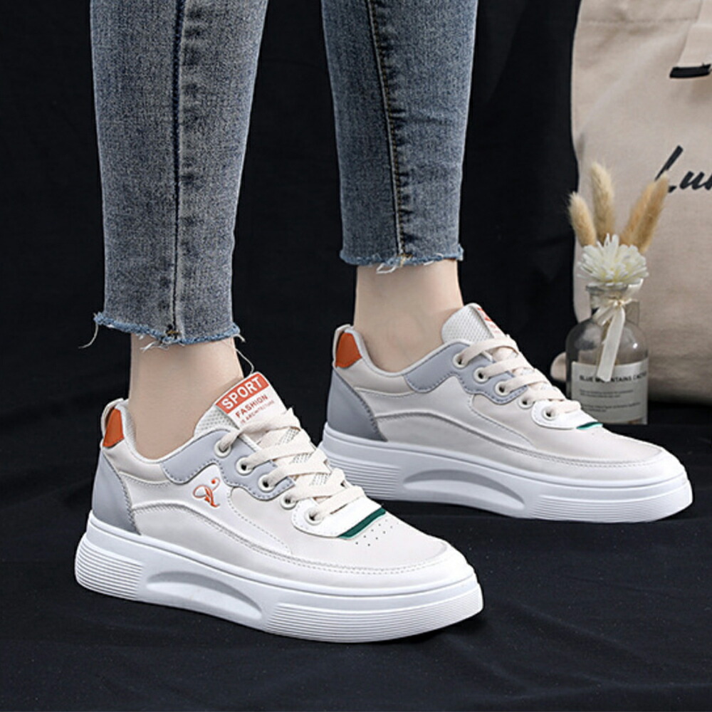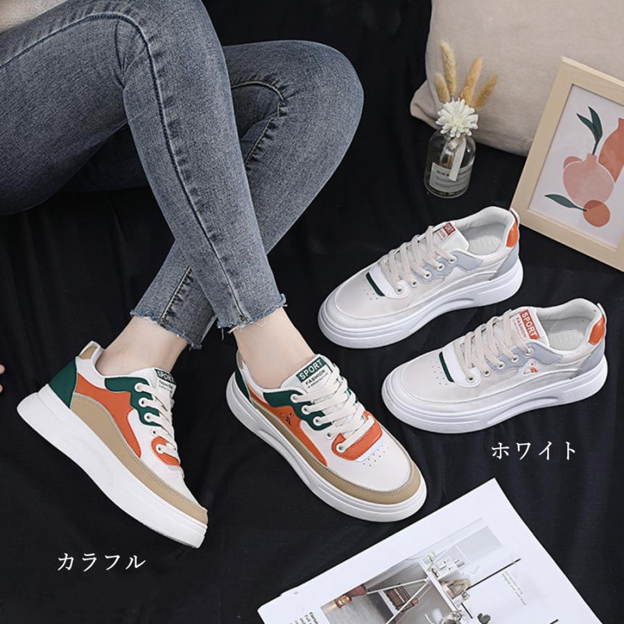 可愛い カジュアル PUレザー 厚底スニーカー おしゃれ レースアップ フラットシューズ 歩きやすい靴 ボリュームソール