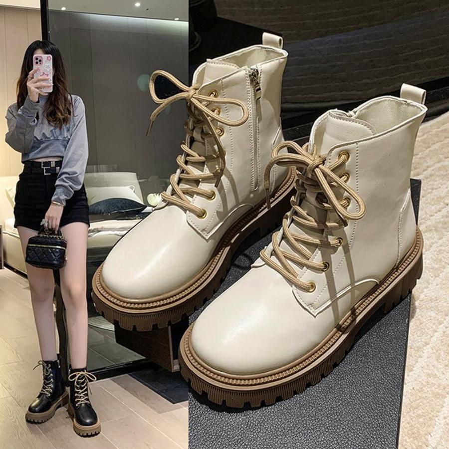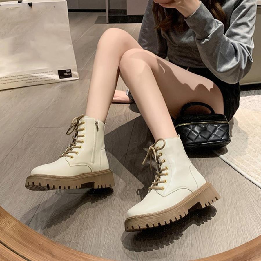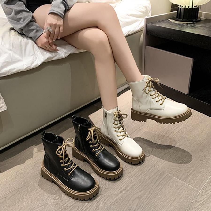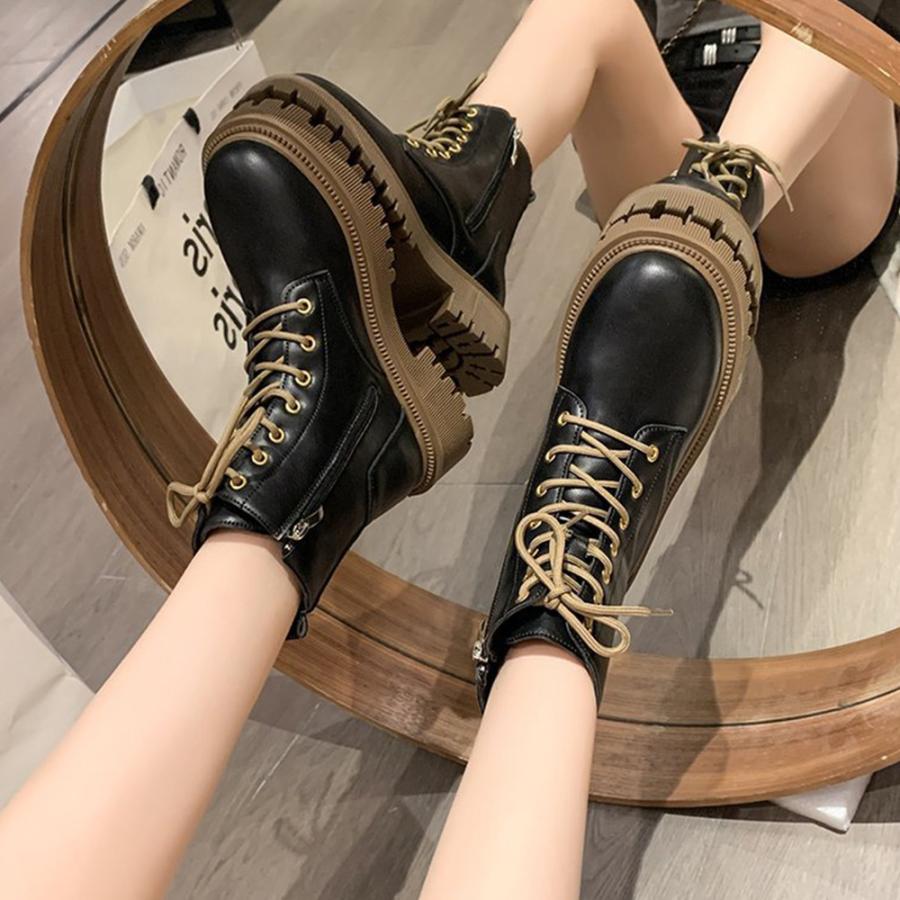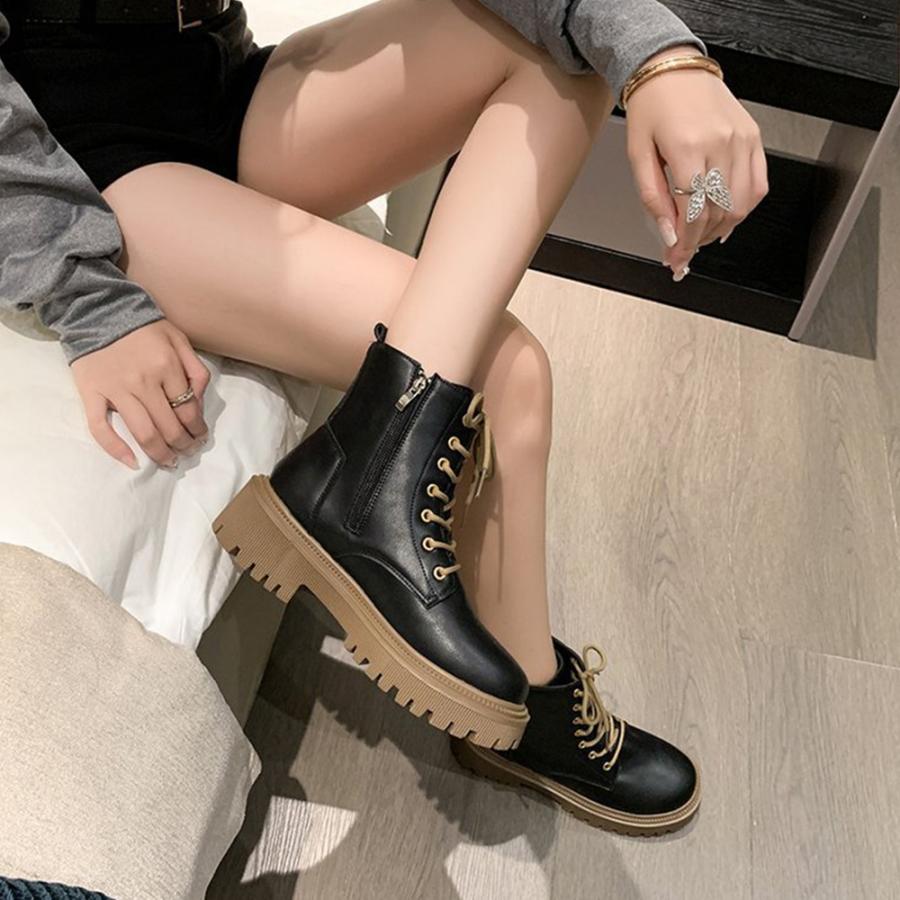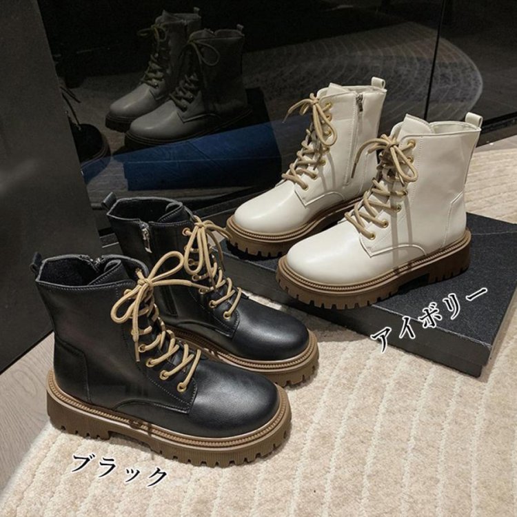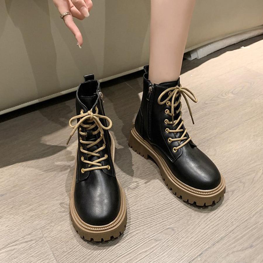 トラックソールブーツ レディース 歩きやすいレースアップシューズ 痛くないアンクルブーツ サイドファスナー カジュアル靴