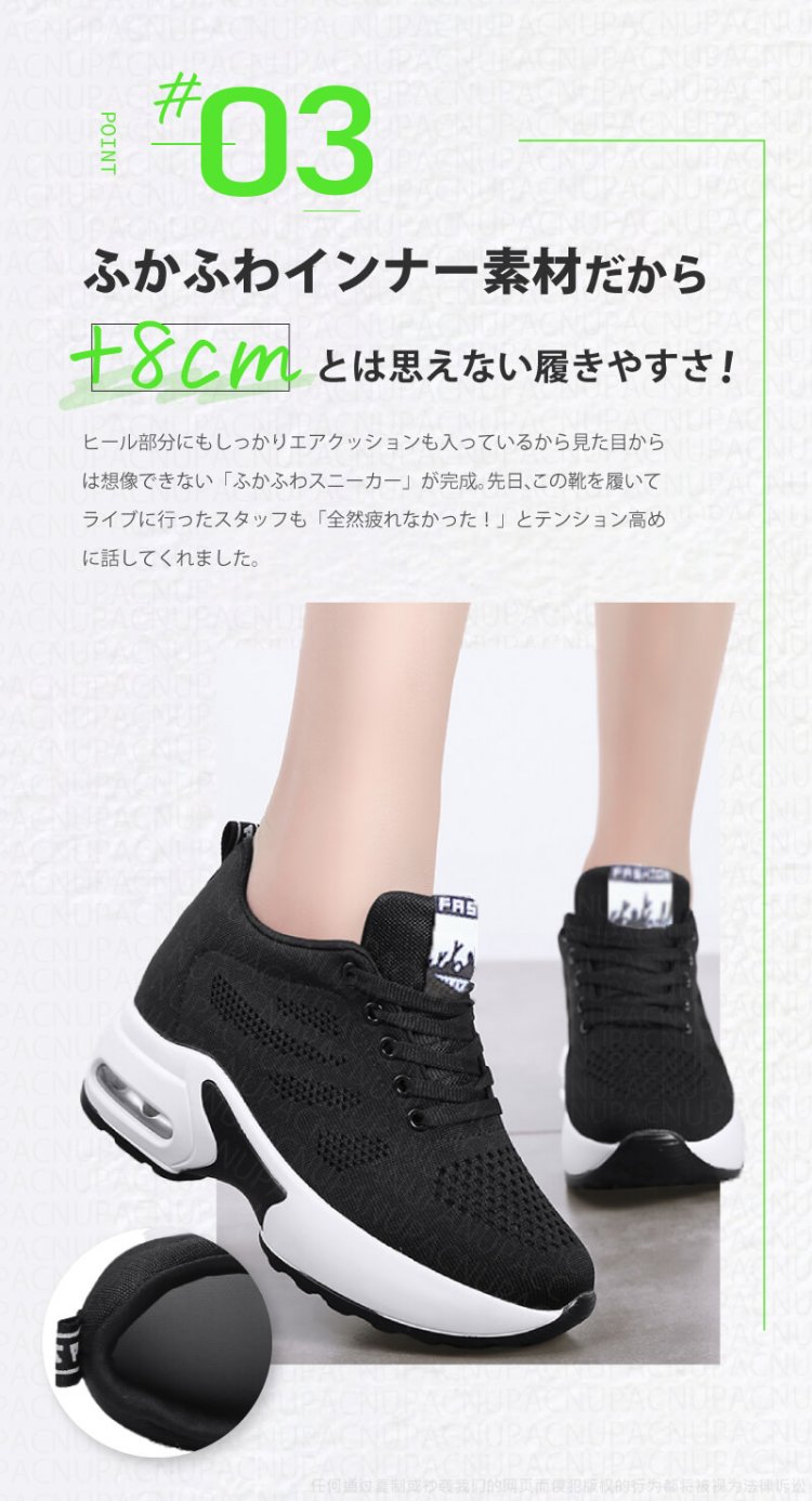 ?ふかふわインナー素材だから+8cmとは思えない履きやすさ!