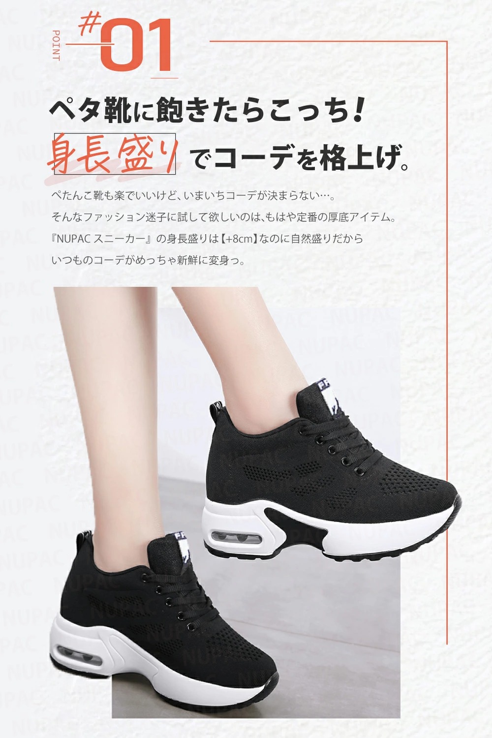 ぺたんこ靴も楽でいいけど、いまいちコーデが決まらない…。そんなファッション迷子に試して欲しいのは、もはや定番の厚底アイテム。『NUPACスニーカー』の身長盛りは【+8cm】なのに自然盛りだから、いつものコーデがめっちゃ新鮮に変身っ。