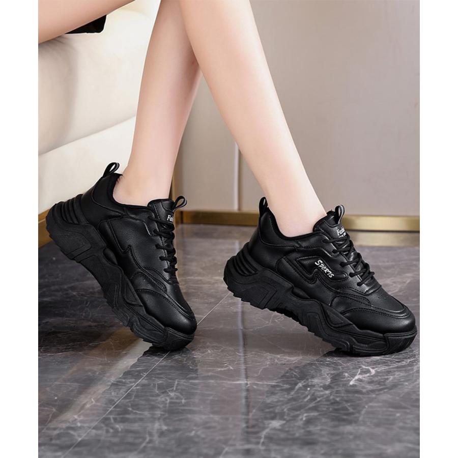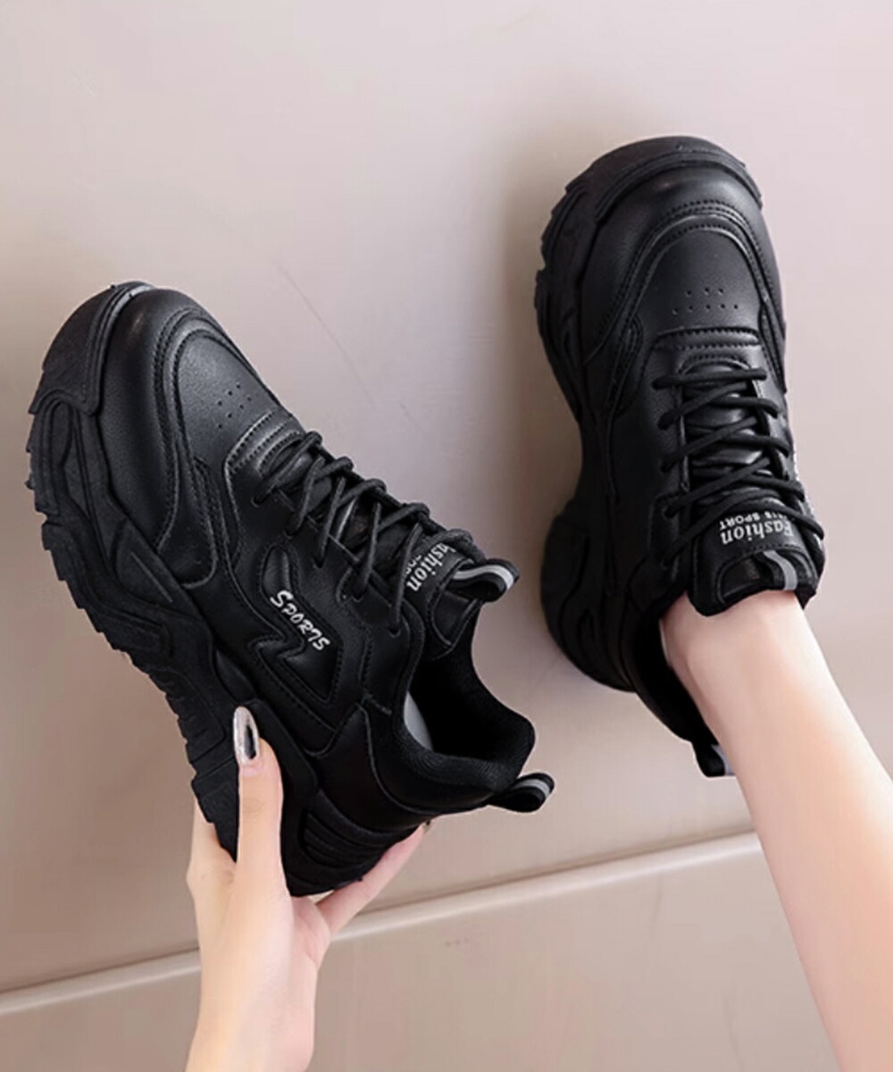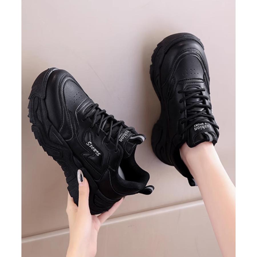 ボリュームスニーカー アウトドア 歩きやすいシューズ 通勤通学靴 履きやすい PUレザースニーカー カジュアルくつ 韓国