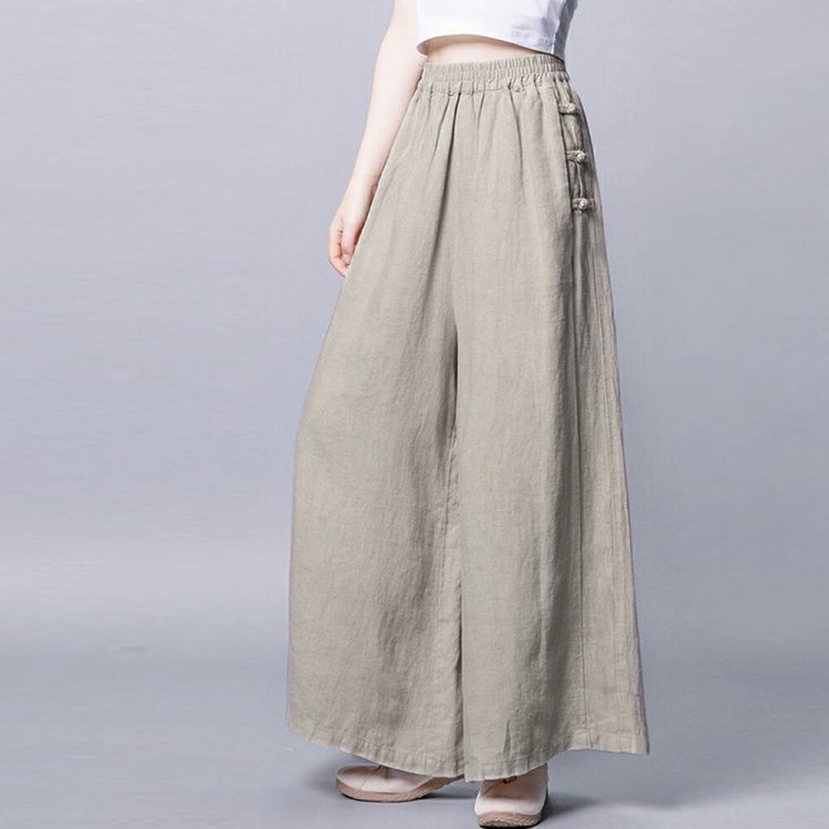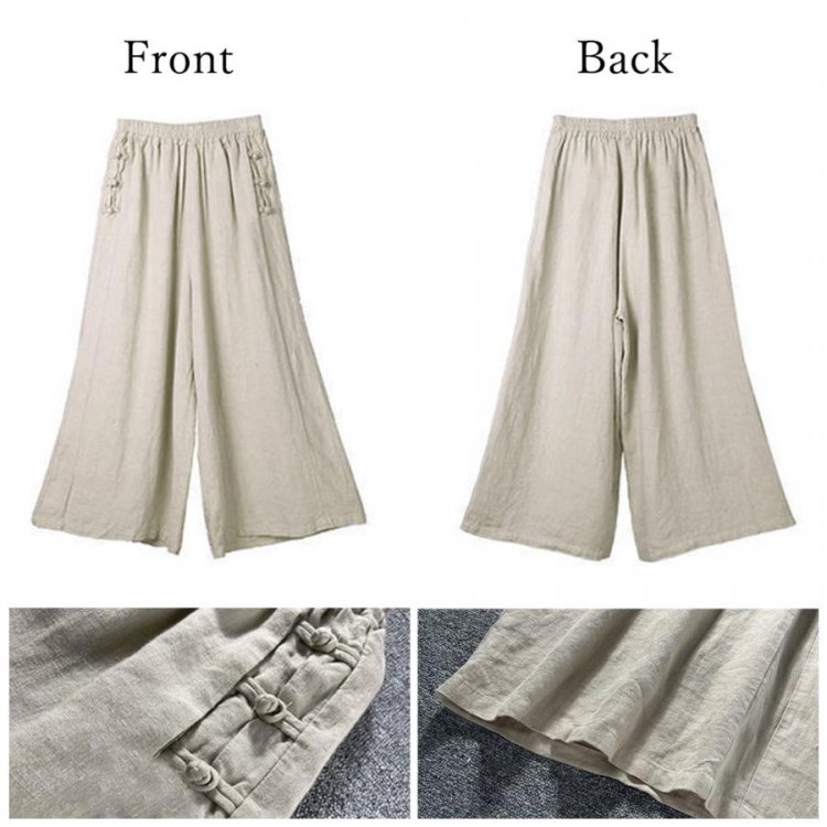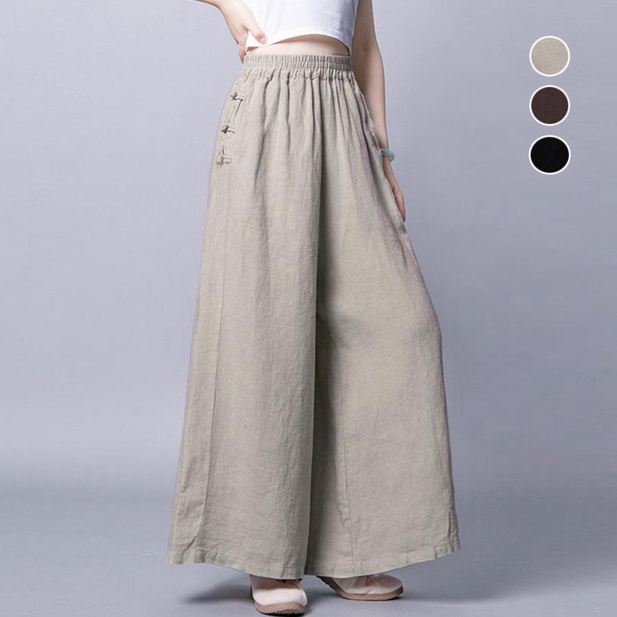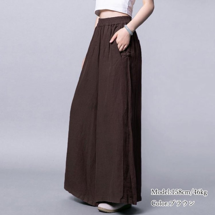 ナチュラルな風合いの綿麻素材で、清涼感のある抜け感たっぷりのワイドパンツ