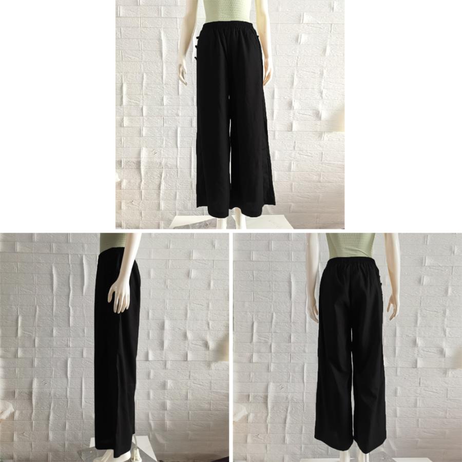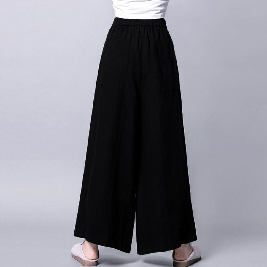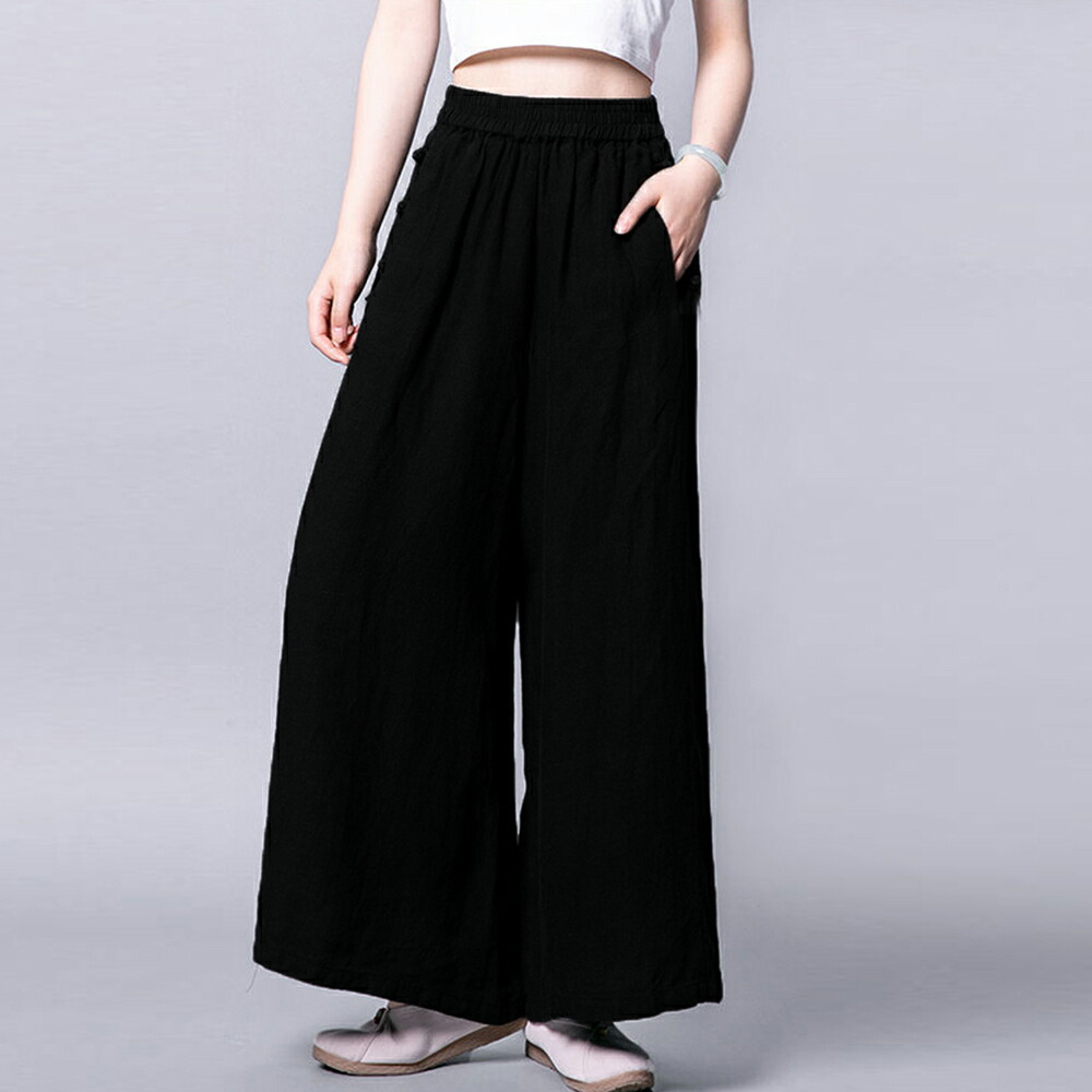 ウエストゴム ゆったり ロングパンツ カジュアル ガウチョパンツ 韓国風 ハイウエスト ワイドガウチョ 薄手 春夏秋