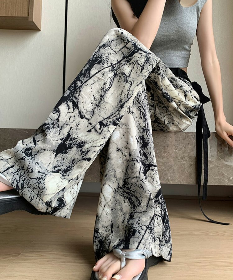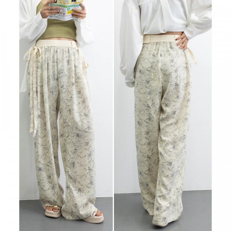 すらりとしたシルエットで脚を長く見せてくれる総柄ワイドパンツ