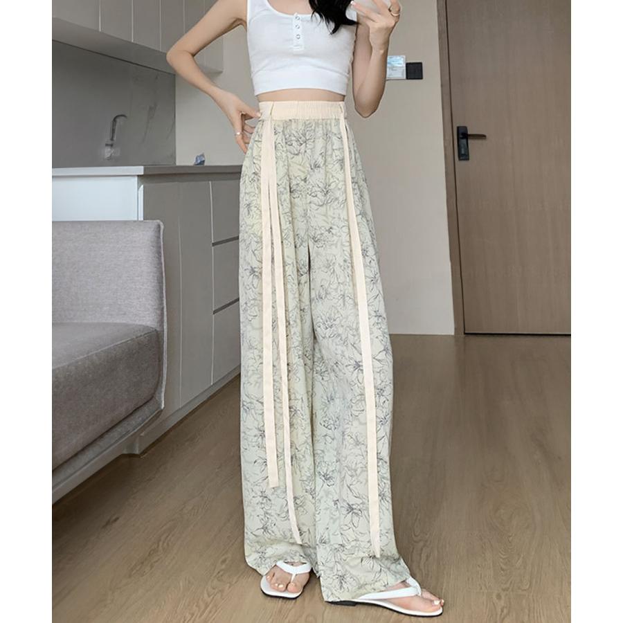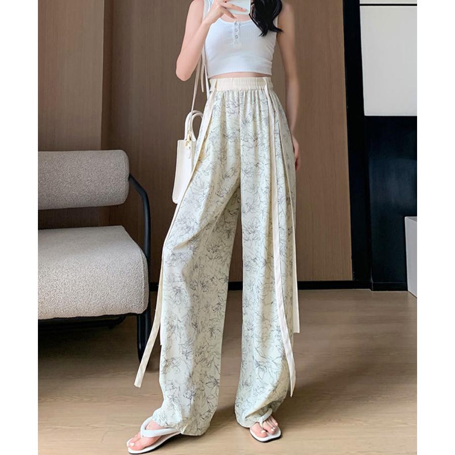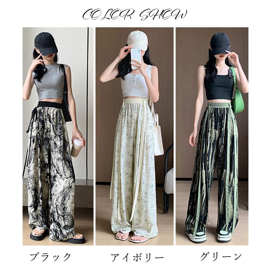 ストレートパンツ ウエストゴム イージーパンツ 体型カバー 冷感タッチ ボトムス ハイウエスト 韓国風 美脚ロングパンツ