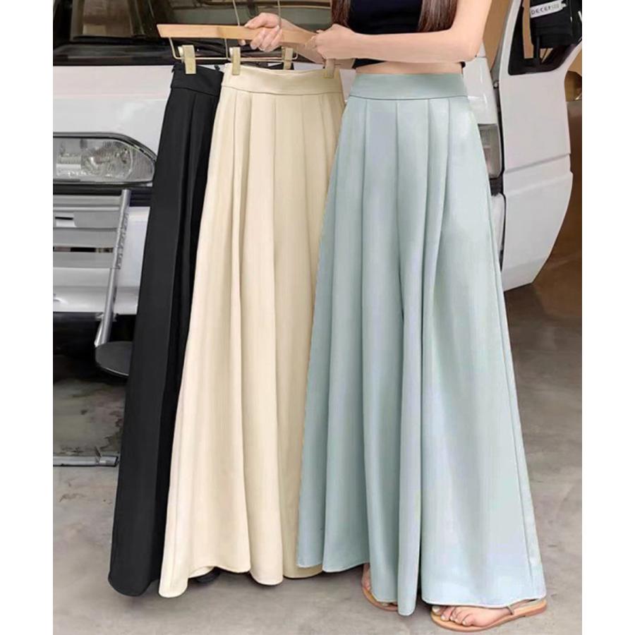 とろみパンツ スカンツ春夏 きれいめ ハイウエストフレアパンツ 無地 ロングパンツ さらとろ 体型カバーボトムス 韓国風