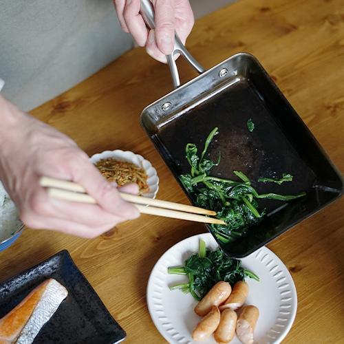 焼き入れや油ひきなどの面倒なお手入れが不要で、鉄フライパンが初めての方でも安心してご使用いただけます。