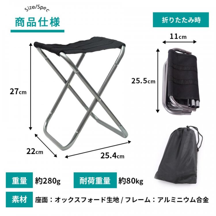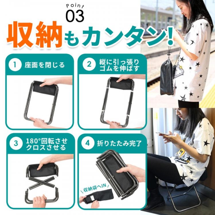 折りたたみ椅子 アウトドアチェア コンパクト アウトドア キャンプ 軽量 折り畳み 室内 いす イス 小型 小さい テーマパーク 持ち運び 収納袋 ポケット カバン リュック サイズ ジャスト