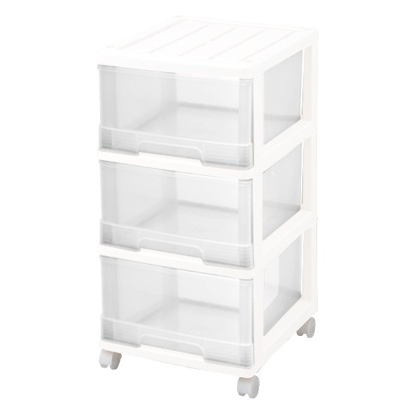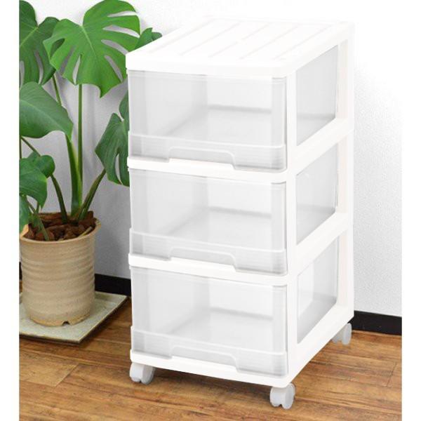 衣装ケース 収納ケース 収納ボックス 引き出し プラスチック 押入れ収納 スリム チェスト 深型 3段 おしゃれ ホワイト/クリア キャスター付き 送料無料