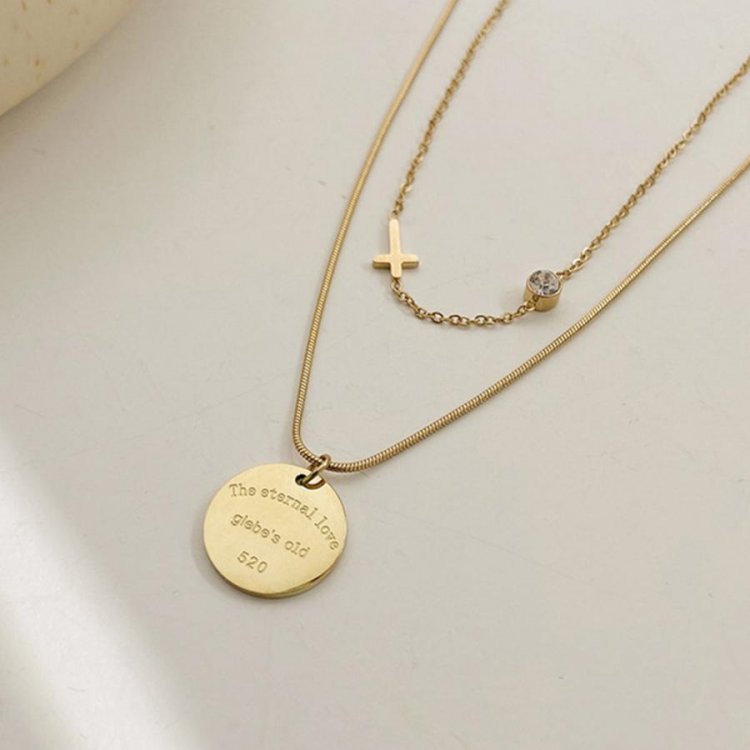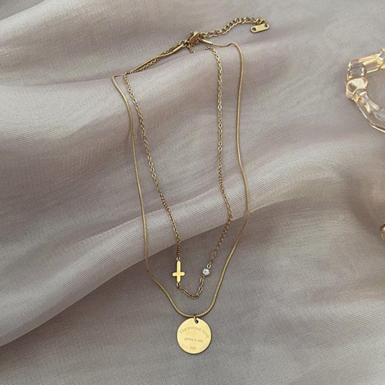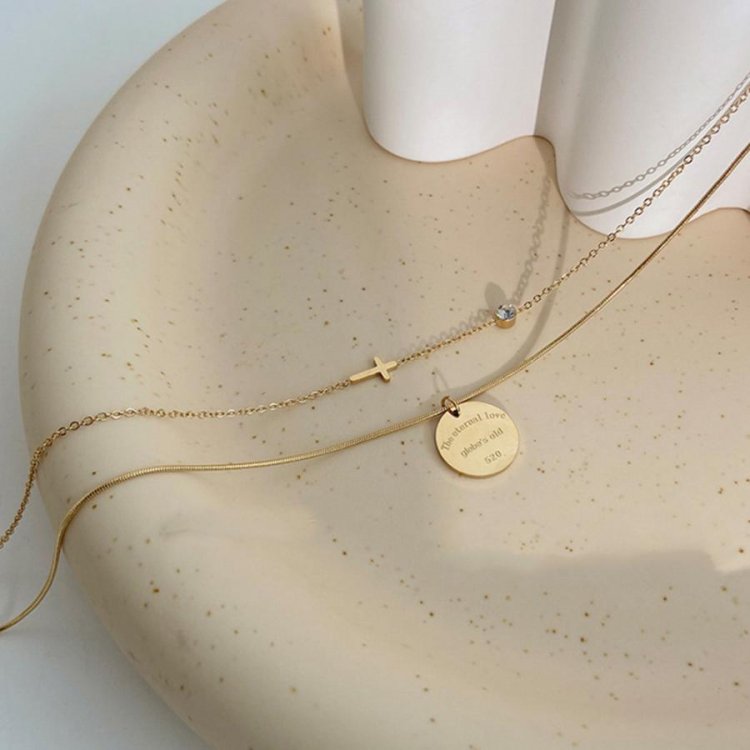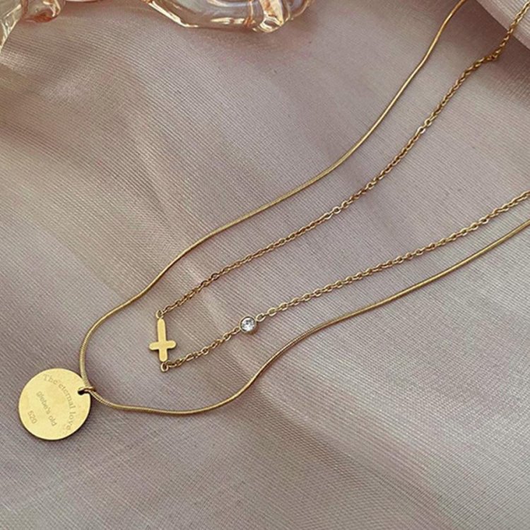 チェーンサイドにクロスを組み込んだ、キュートなショートネックレス。