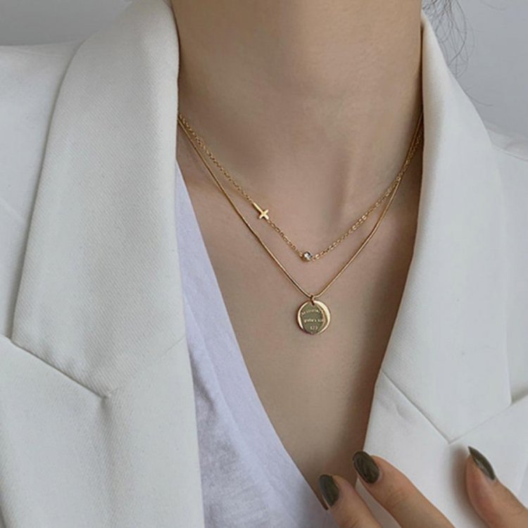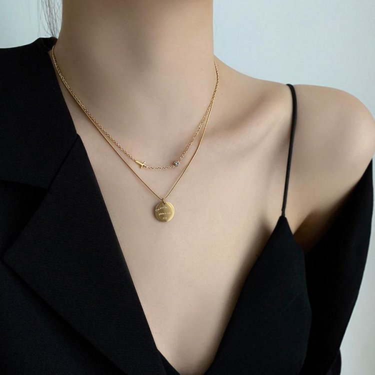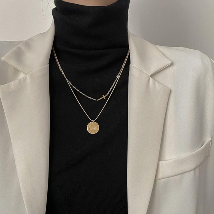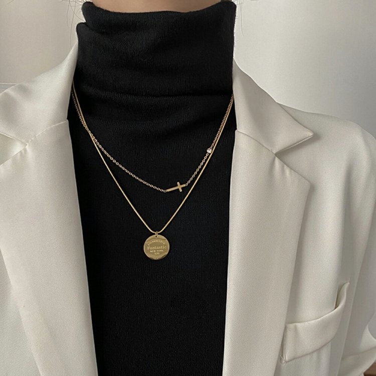 重ね付け風 メタル ショートネックレス レディース 非対称デザイン レトロ ペンダント大人カジュアル アクセサリー