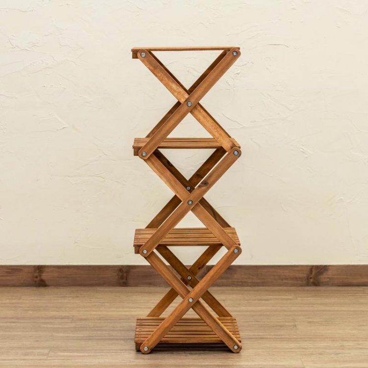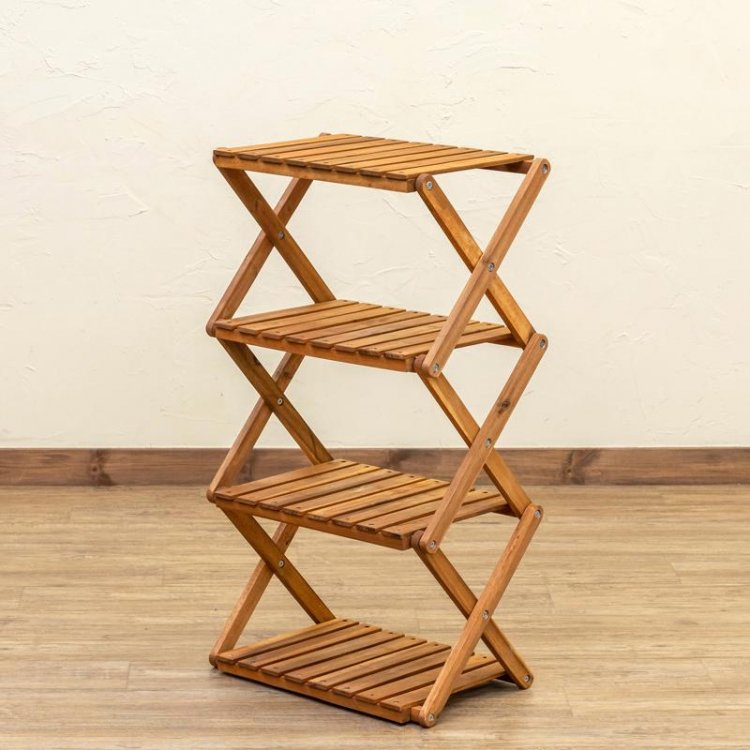 ※本商品はヤマト運輸にてお届けの予定です。NEWアカシア折り畳みラック4段です。アカシア材は防虫効果と耐久性に優れた木材です。オイルステイン塗装により、使い込むほど味が出てきます。シンプルなデザイン!折り畳みが出来るので持ち運びにも便利です。屋外レジャーのお供ににぴったり、ワンランク上のアウトドアライフを!