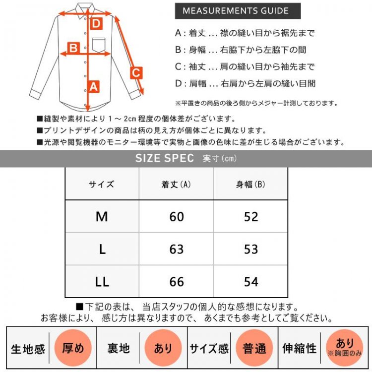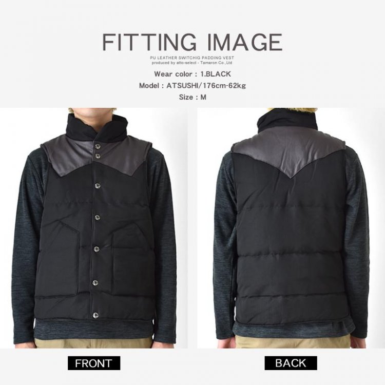写真モデルは身長176cm体重62kgで、Mサイズを着用しています。